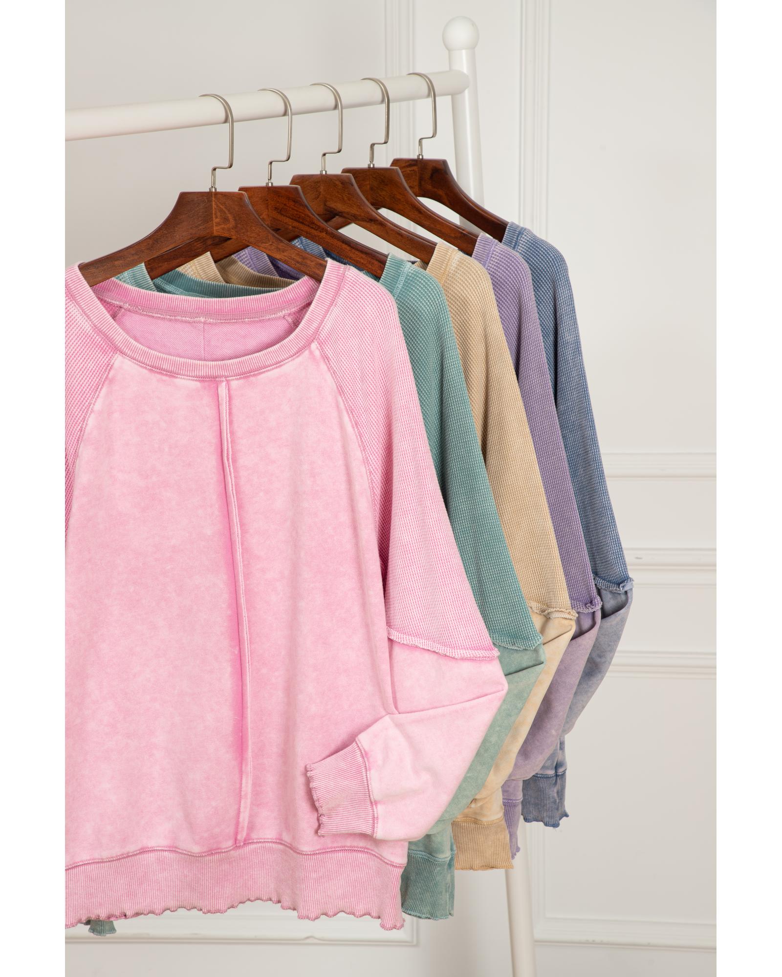 Black Solid Waffle Knit Patchwork Raglan Sleeve Sweatshirt – XL