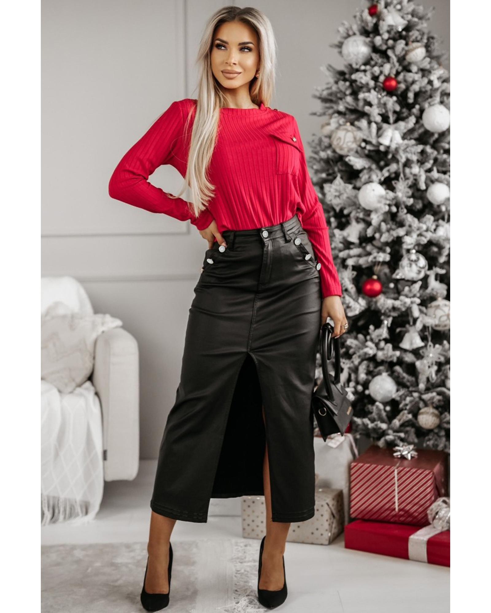 - Black split front high waist slim fit midi skirt