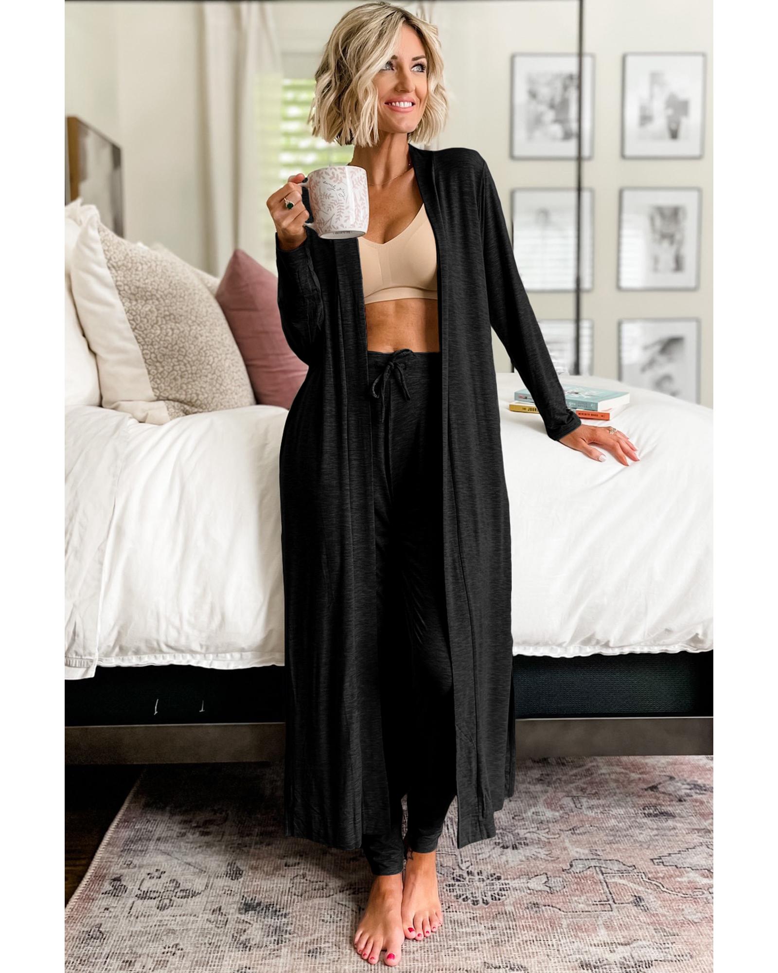 Black Split Long Cardigan and Skinny Pants Lounge Set – M