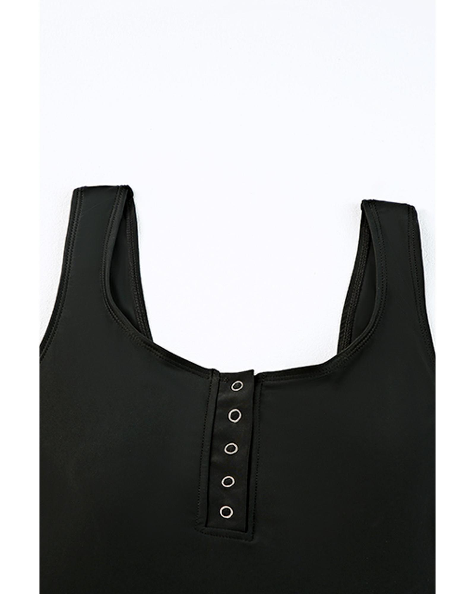 Black Square Neck Sleeveless Fashion Print Tankini Set – S
