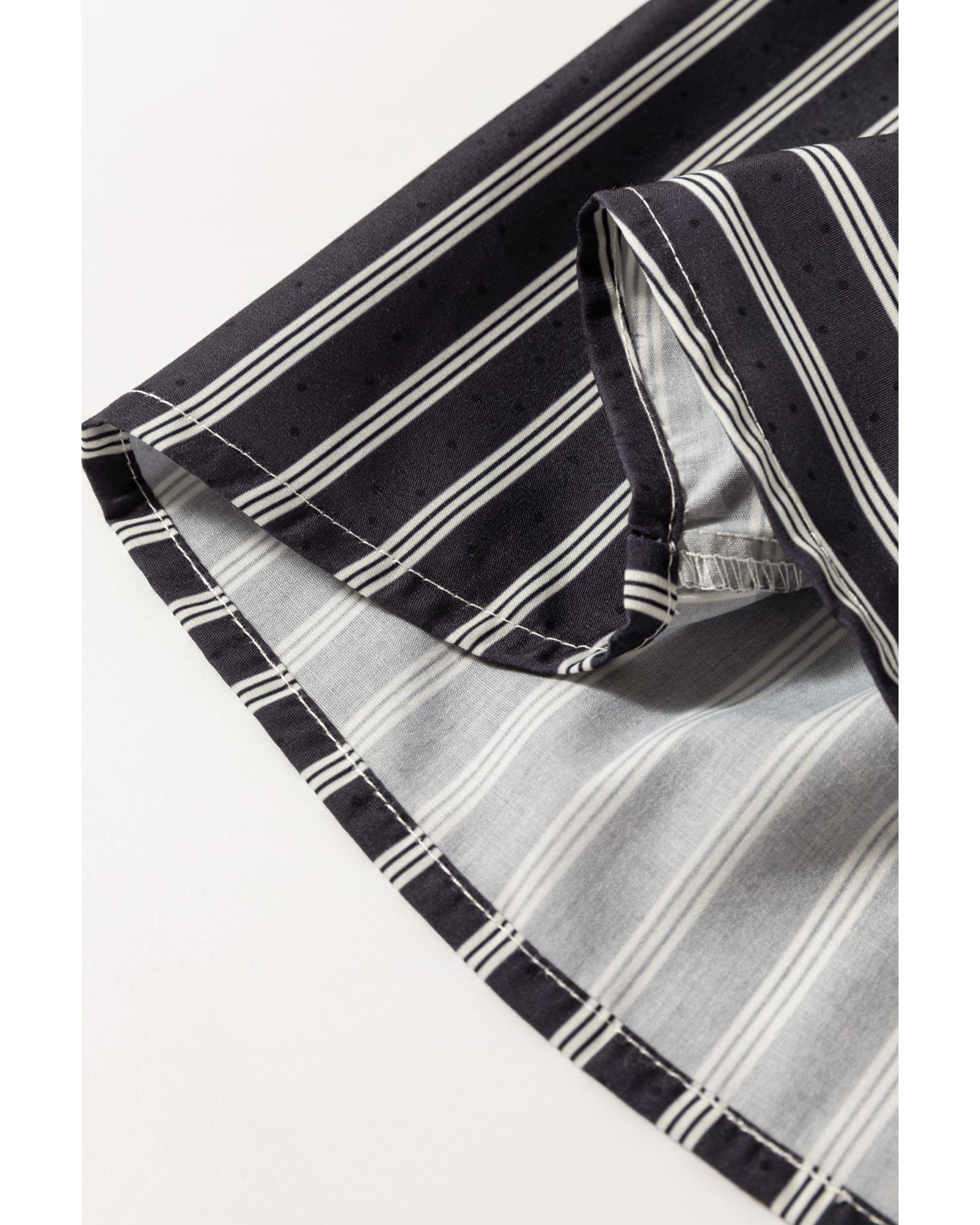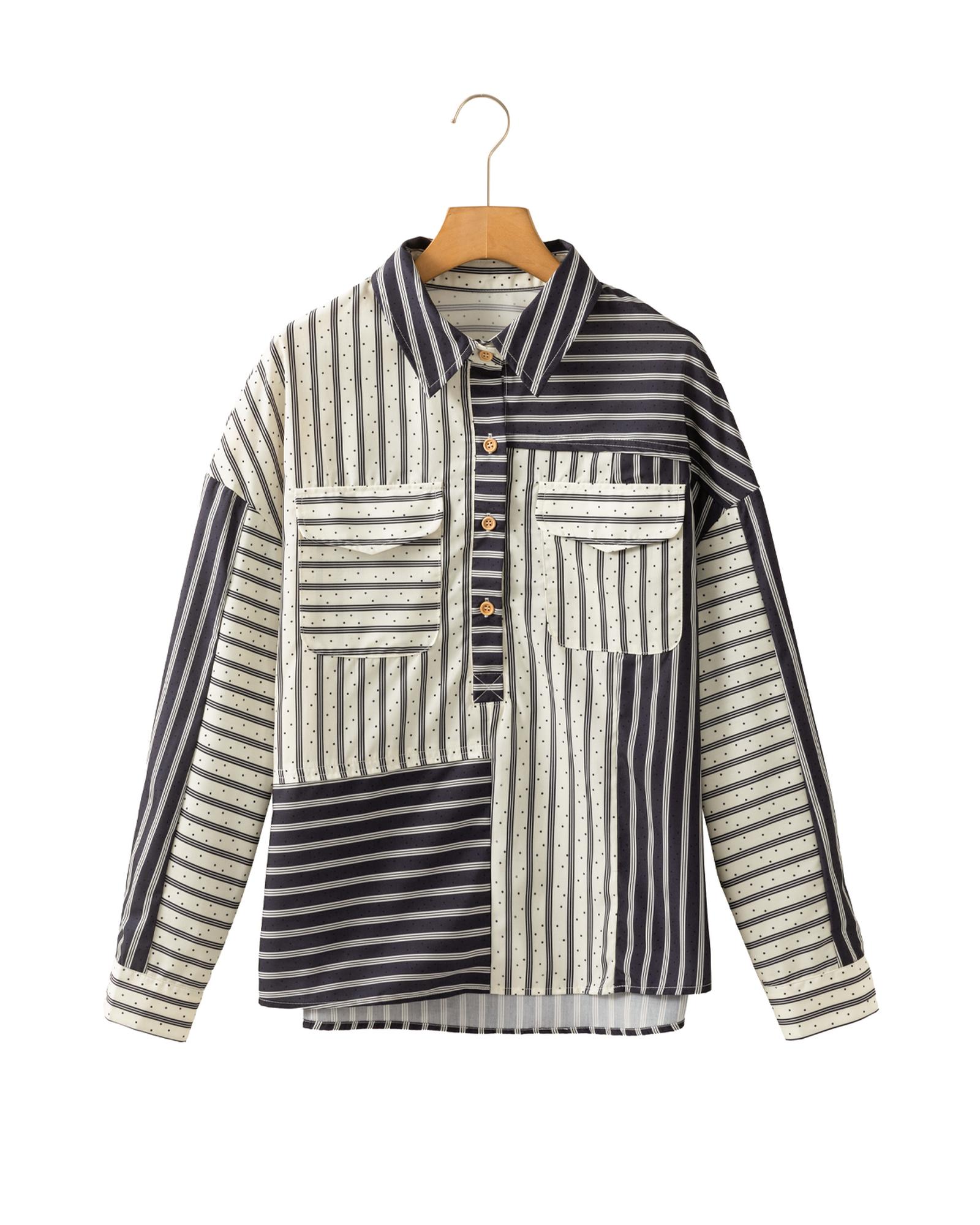Black Stripe 2-tone Patchwork Half Buttons Chest Pockets Casual Blouse – S
