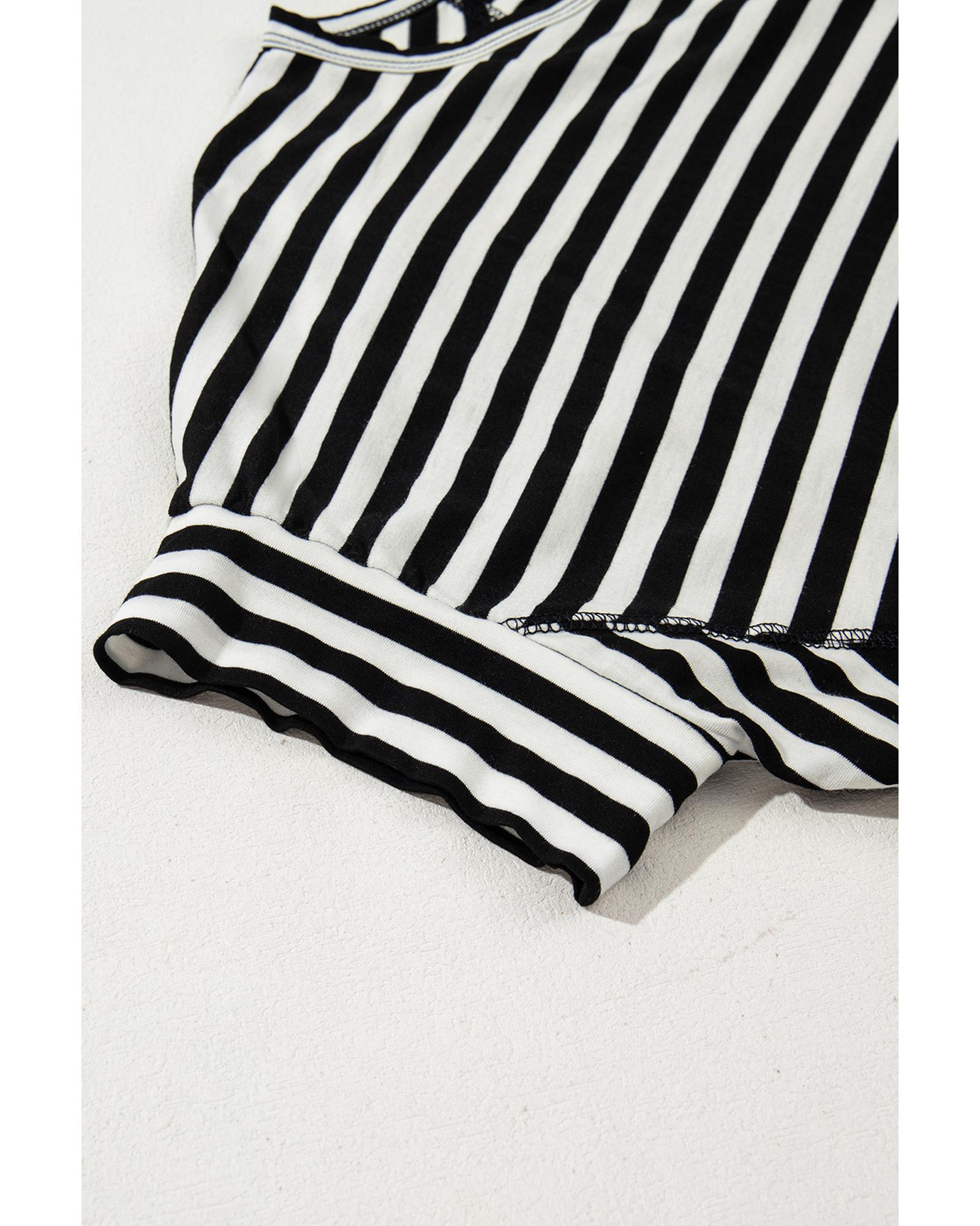 Black Stripe Batwing Sleeve Crewneck Oversized Top – M
