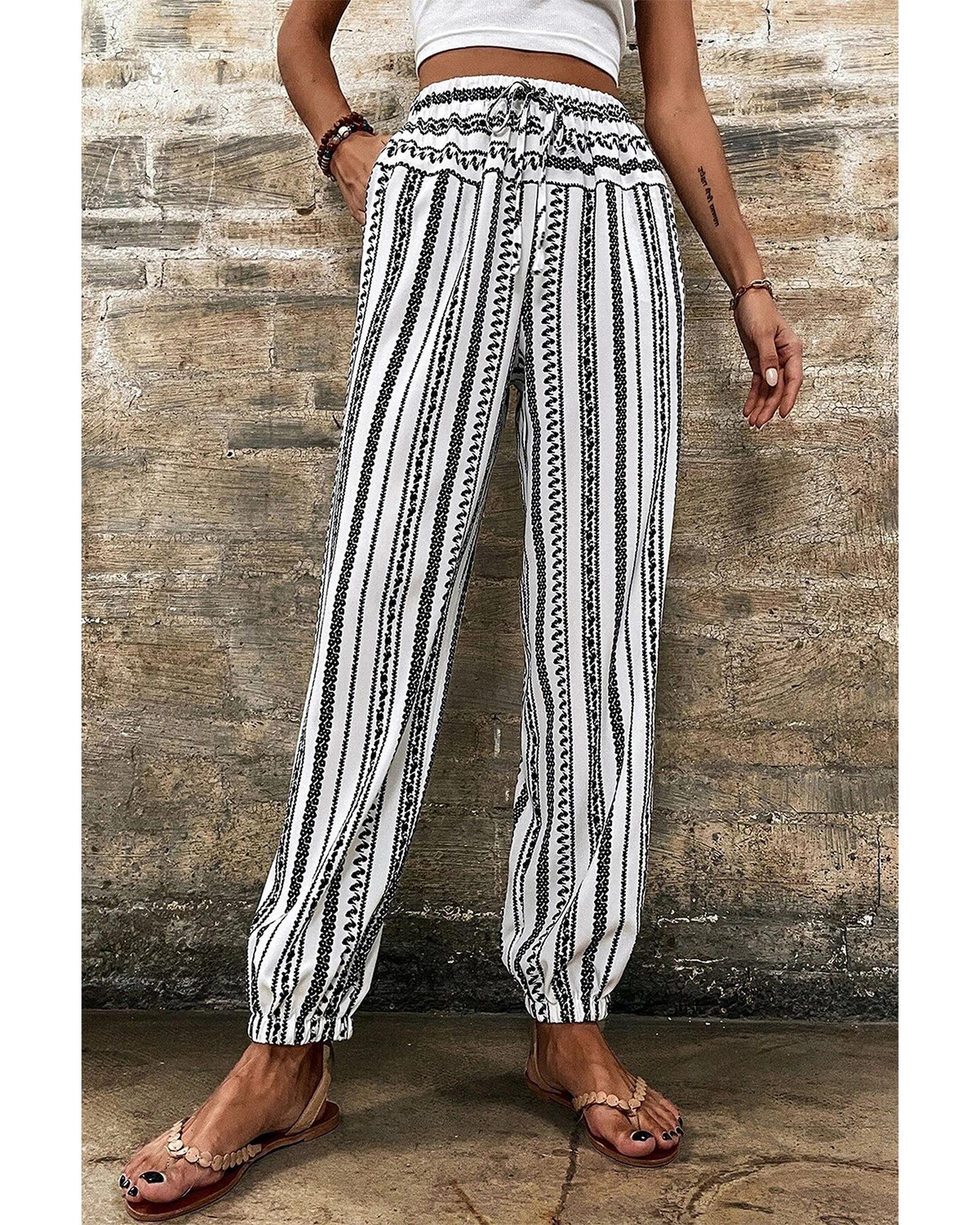Black Stripe Boho Striped Print Casual Pants – M