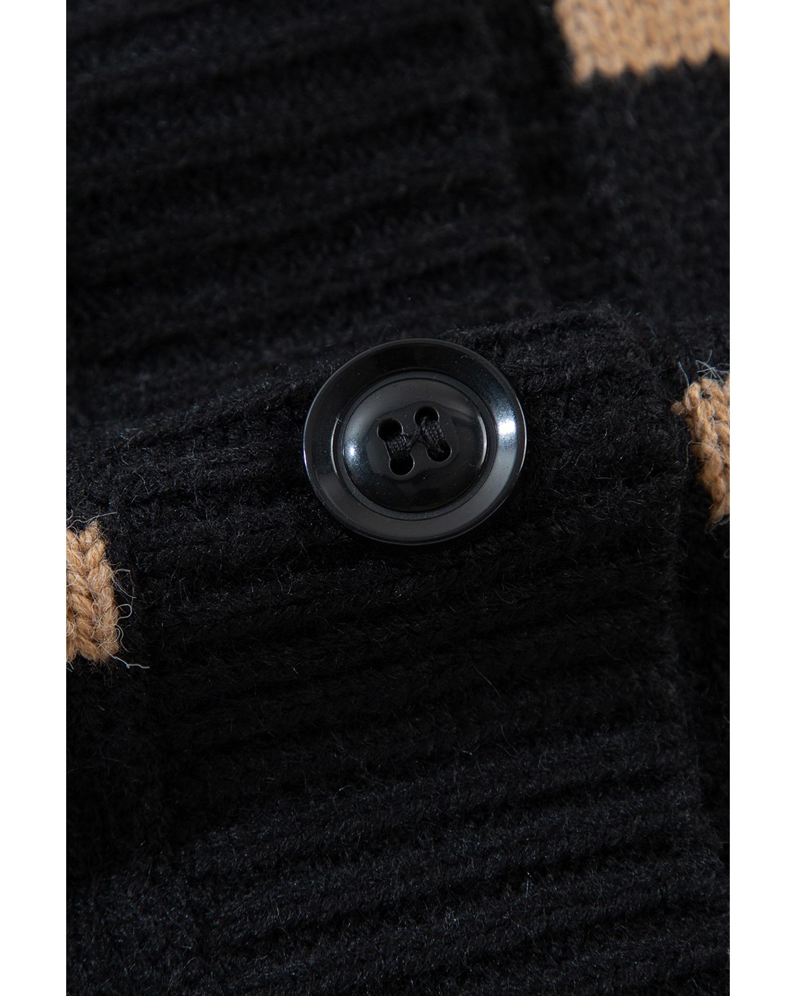 Black Stripe Buttoned V Neck Drop Shoulder Loose Cardigan – 2XL