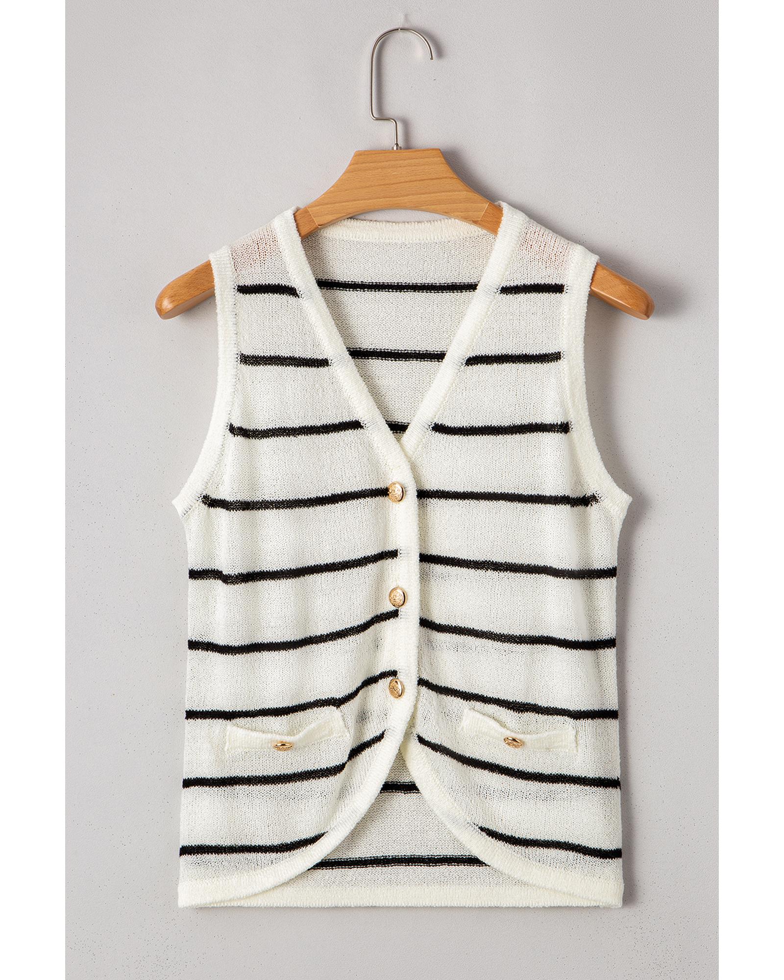 Black Stripe Buttoned V Neck Slim Fit Sweater Vest – S