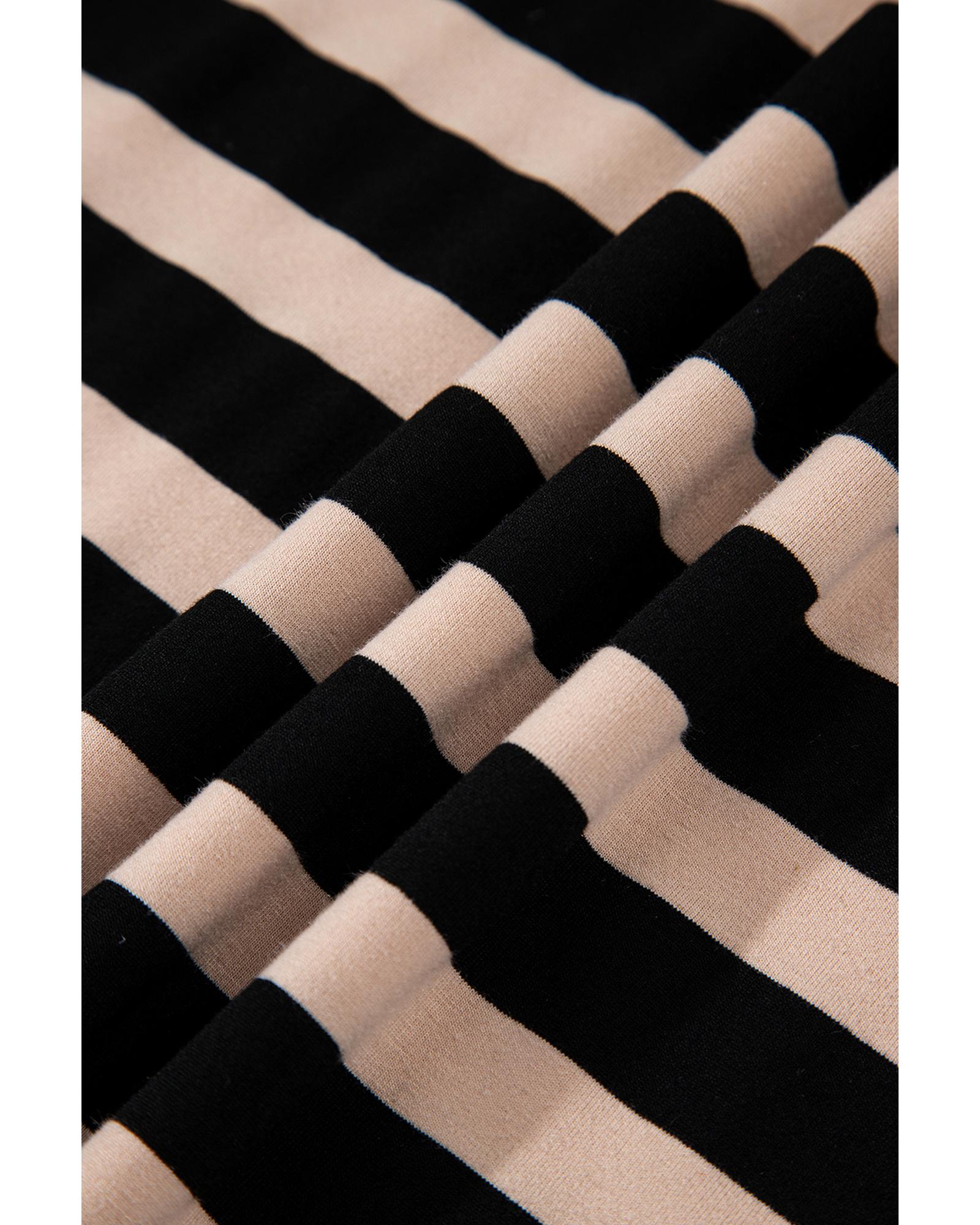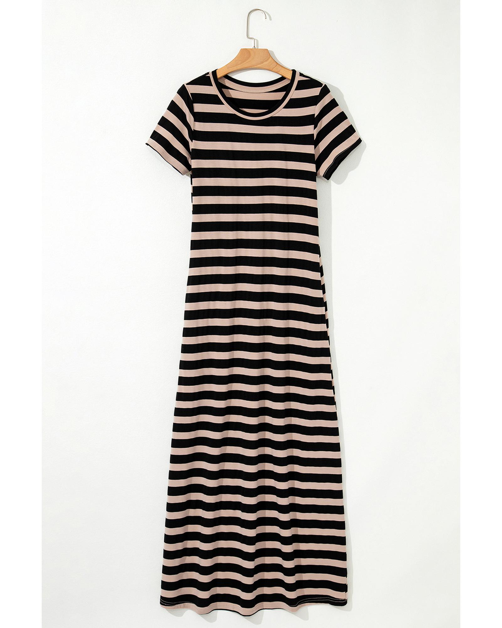 Black Stripe Casual Round Neck T-shirt Maxi Dress with Pockets – S