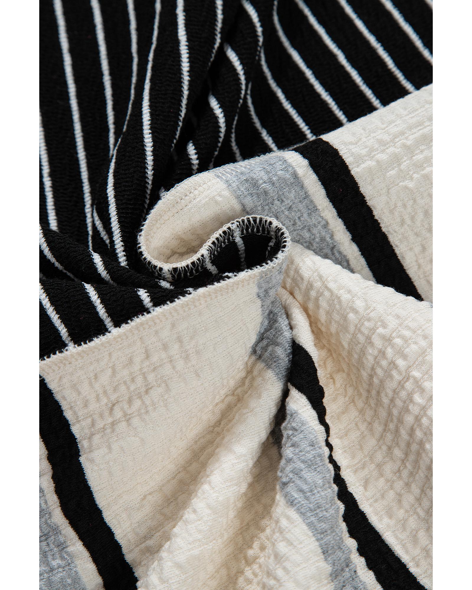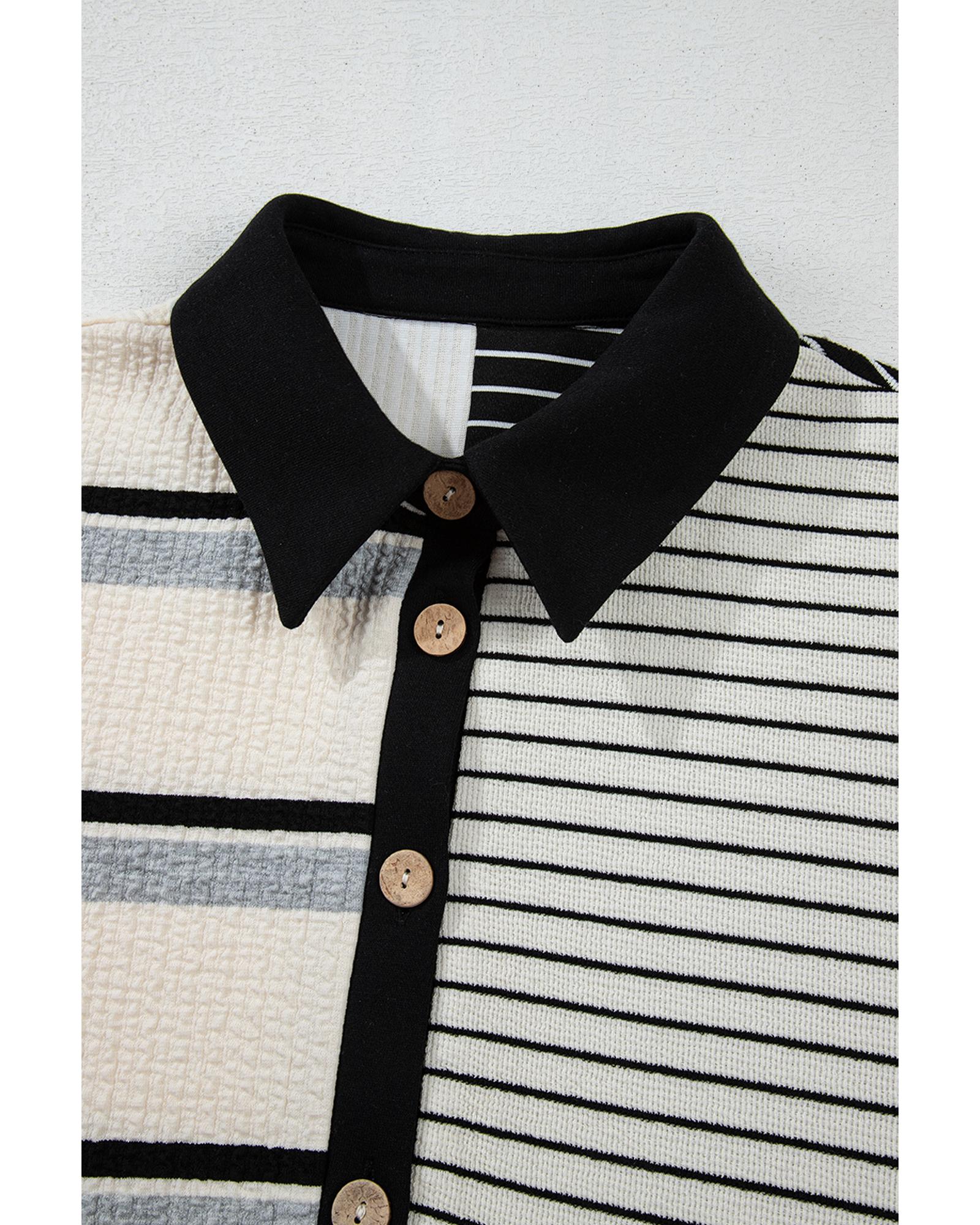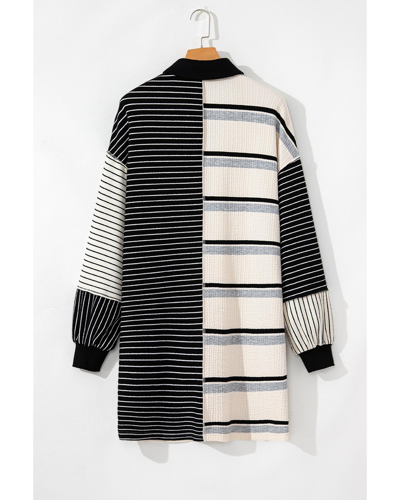 - Black Stripe Colorblock Knit Henley Collar Shift Long Sleeve Mini Dress