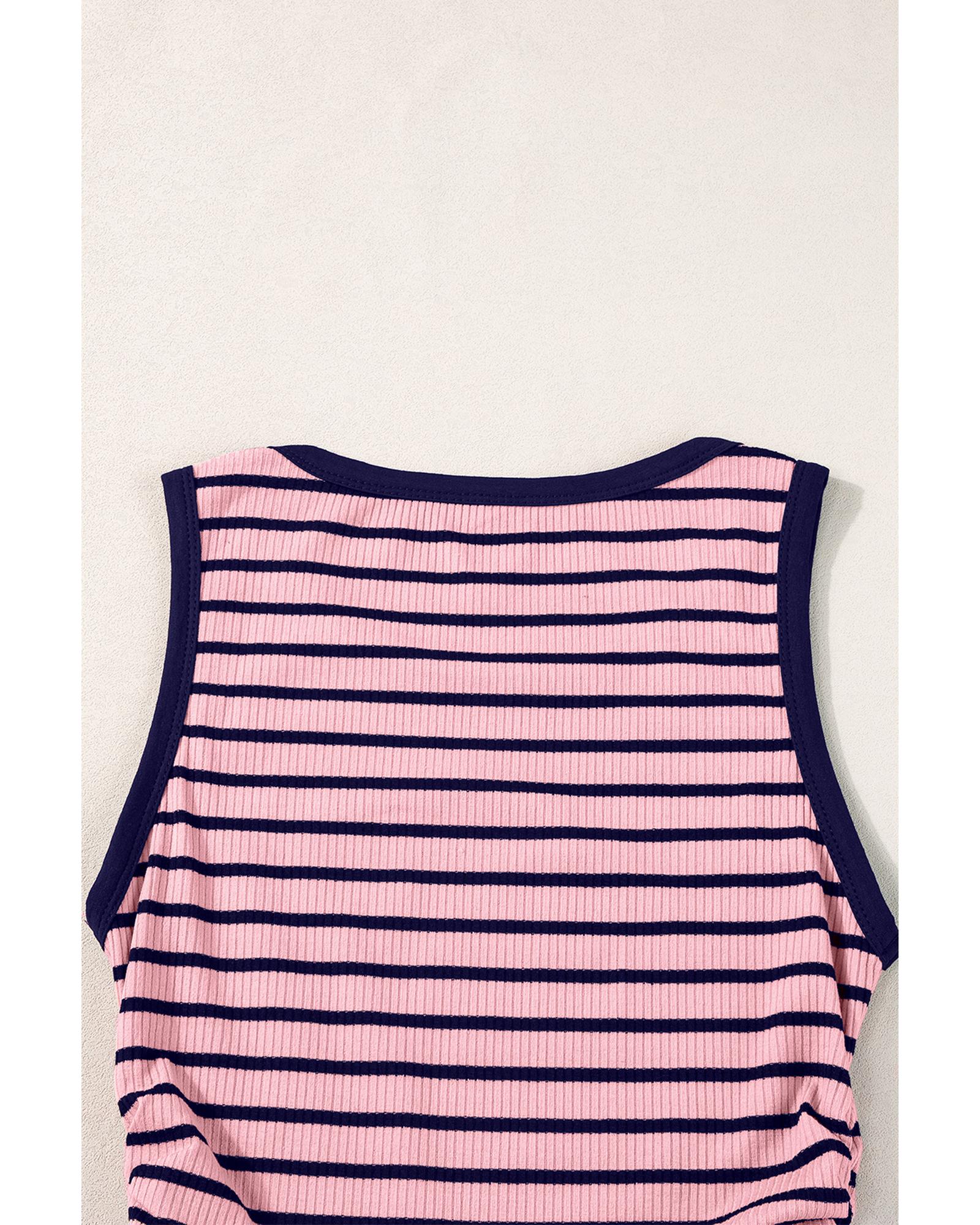 Black Stripe Contrast Round Neck Sleeveless Slim Top – XL