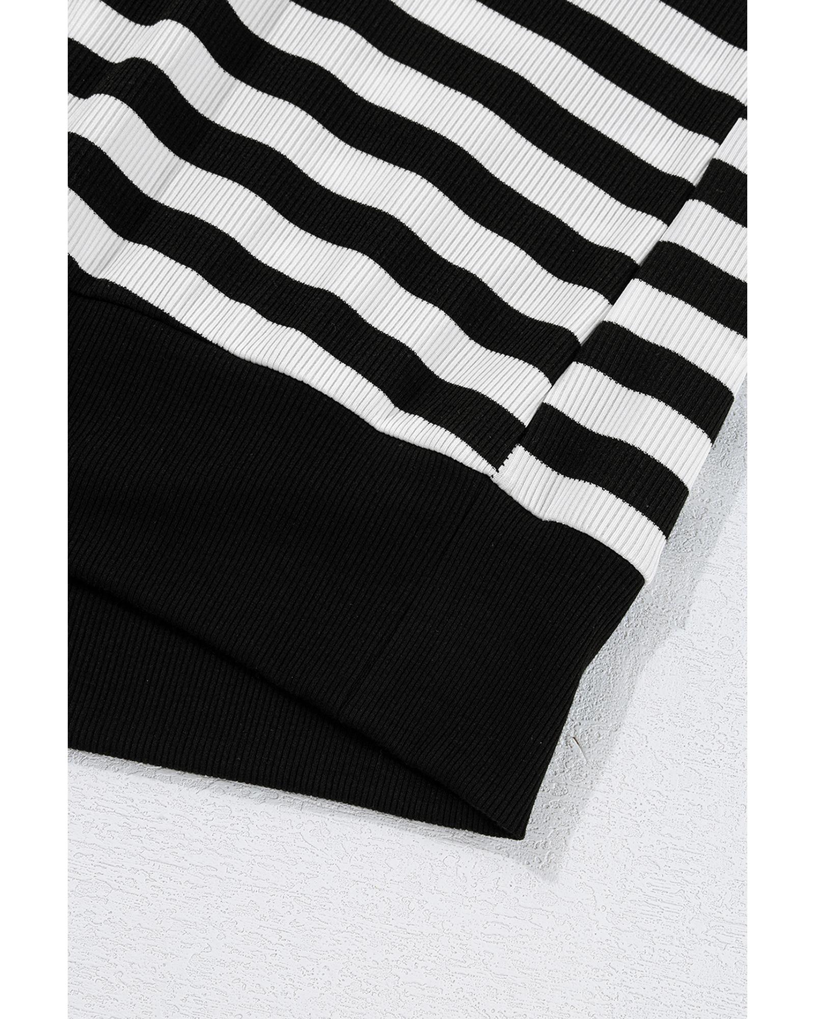 Black Stripe Crochet Hollow-out Back Buttoned Shoulder V Neck Top – L