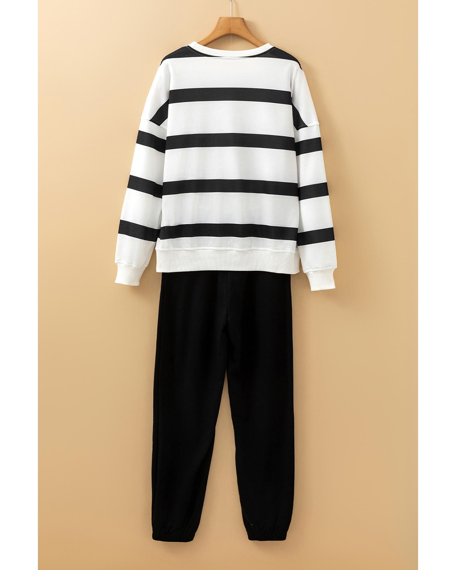 Black Stripe Drop Shoulder Pullover and Jogger Pants Set – 2XL