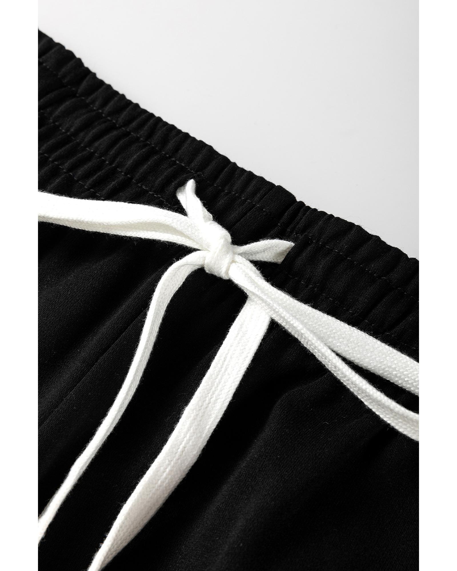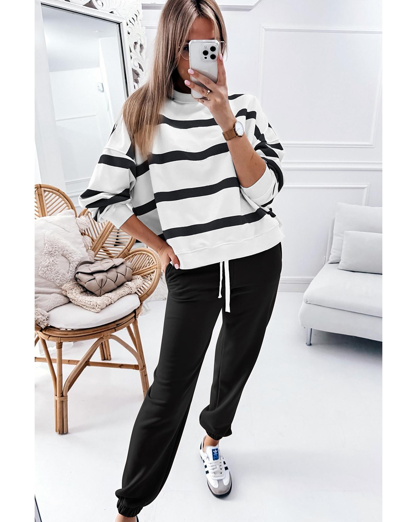 Black Stripe Drop Shoulder Pullover and Jogger Pants Set – L