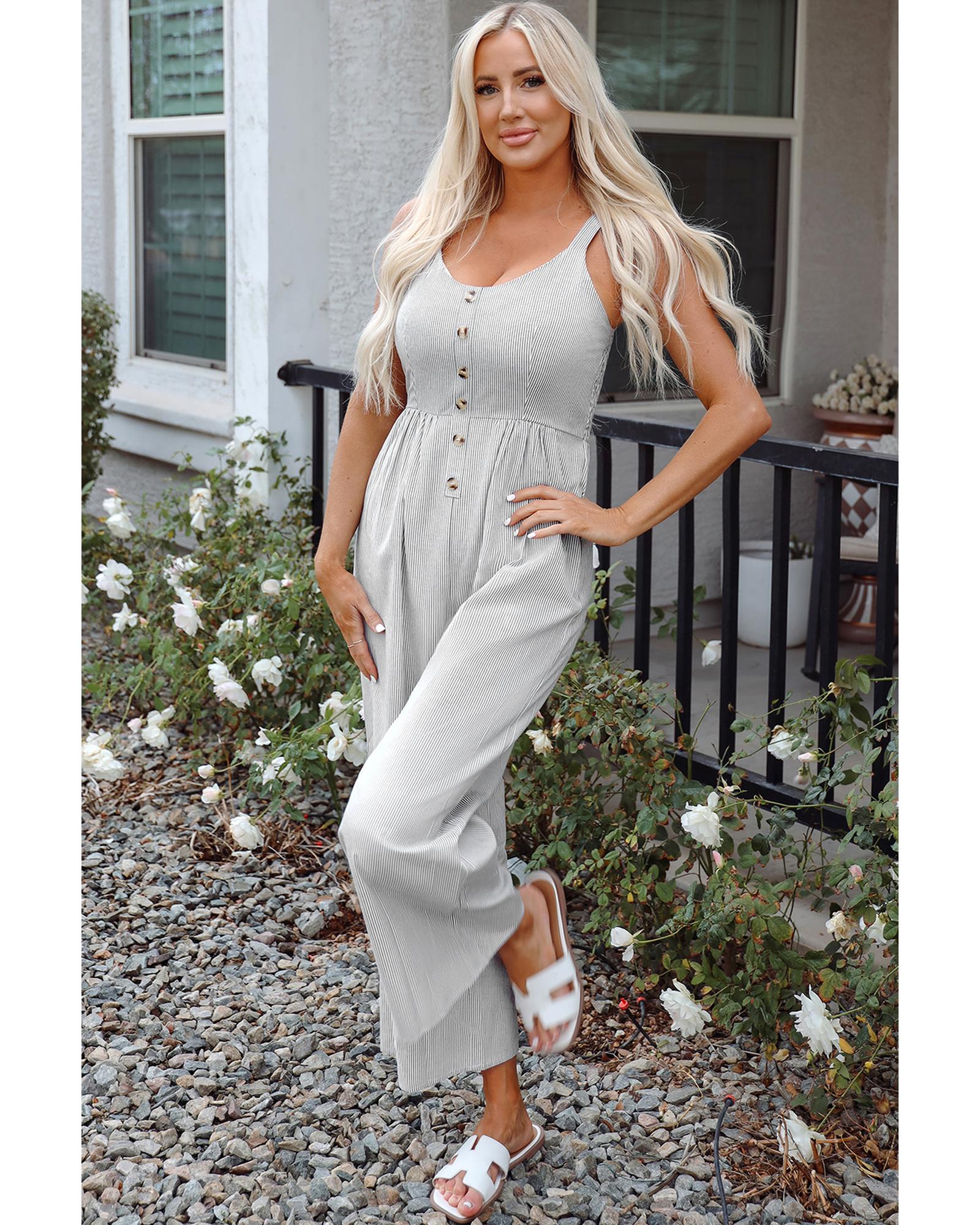 Black Stripe Half Buttoned Sleeveless Wide Leg Jumpsuit – L