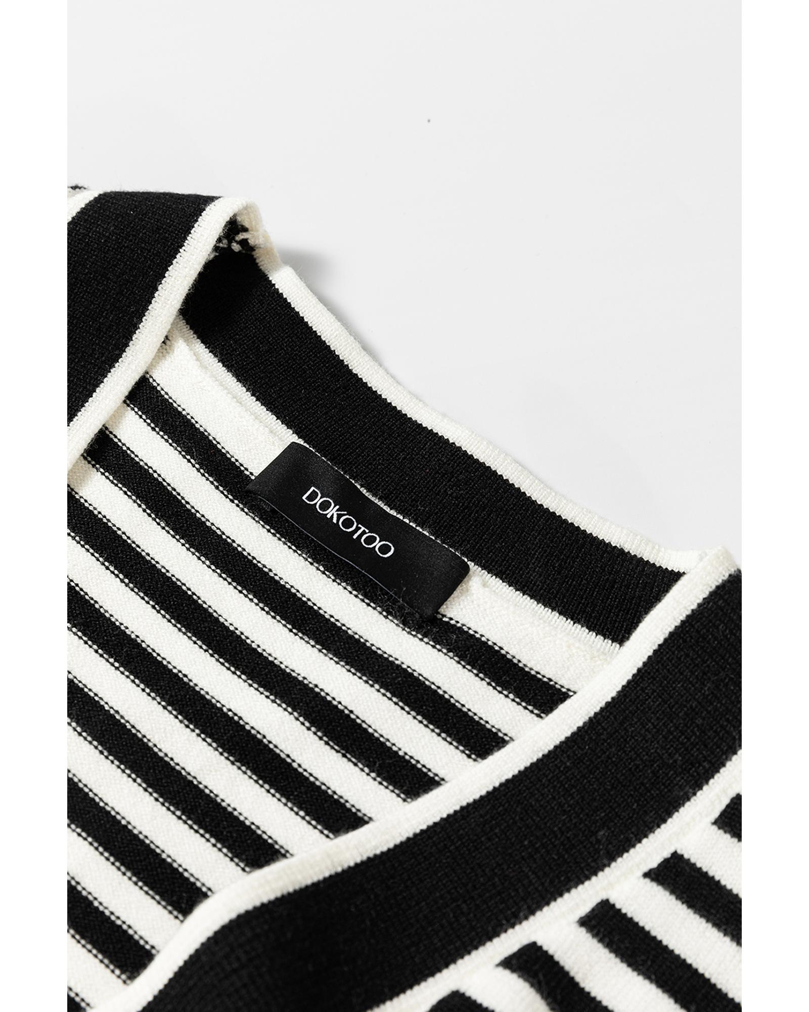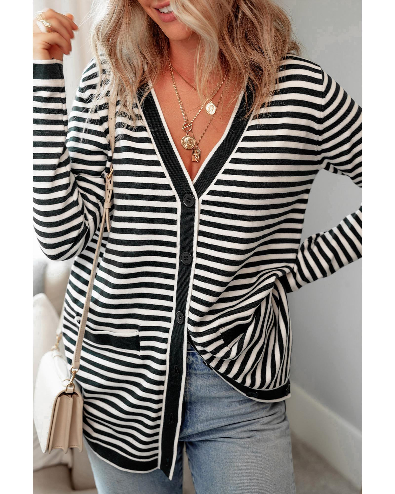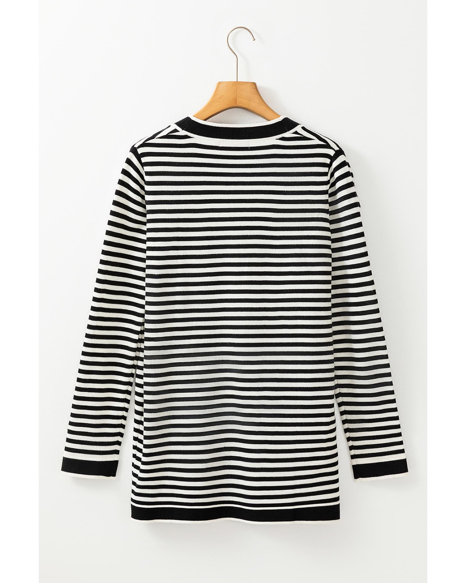 Black Stripe Long Sleeve Button up Tunic Cardigan – 2XL