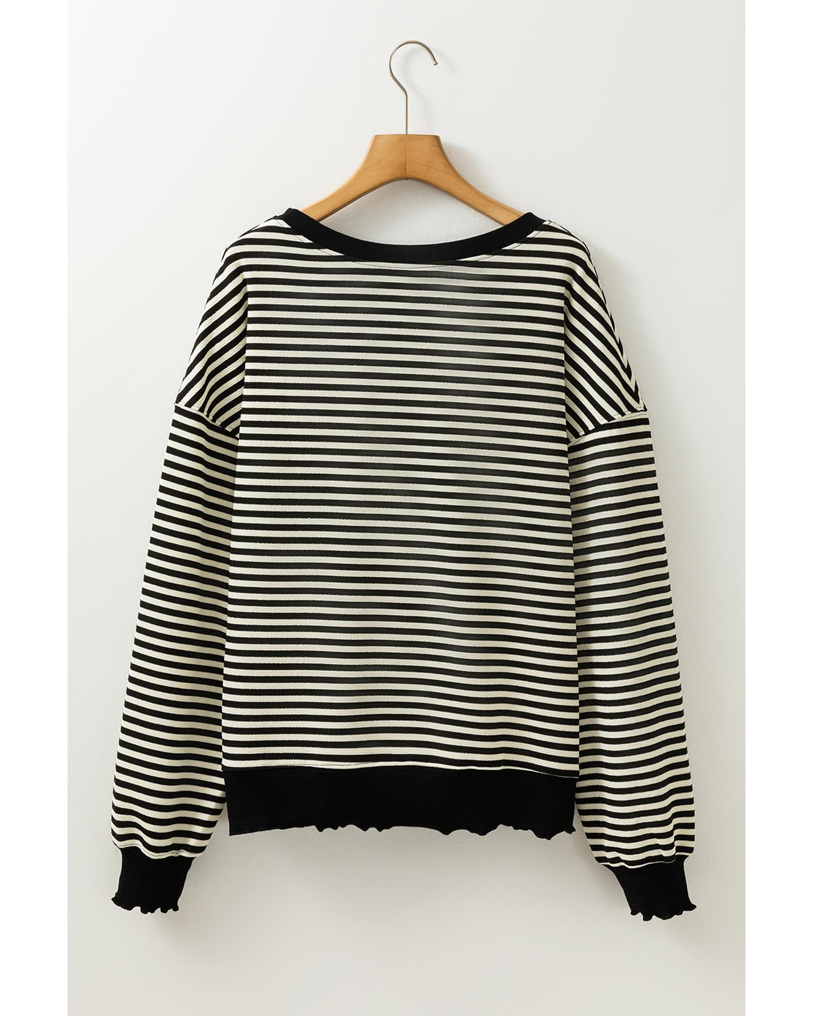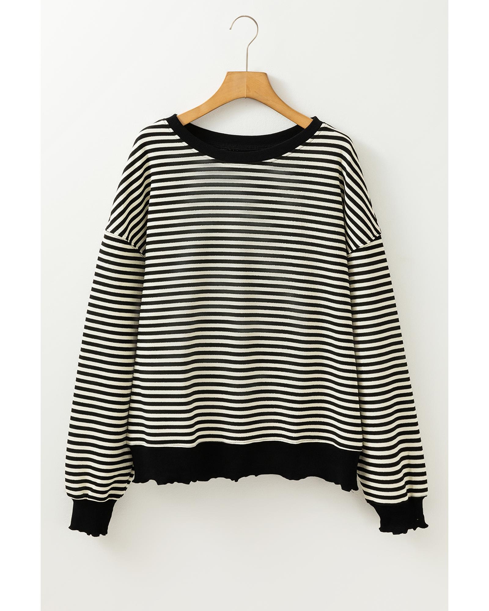• Black Stripe Loose Drop Shoulder Long Sleeve Top