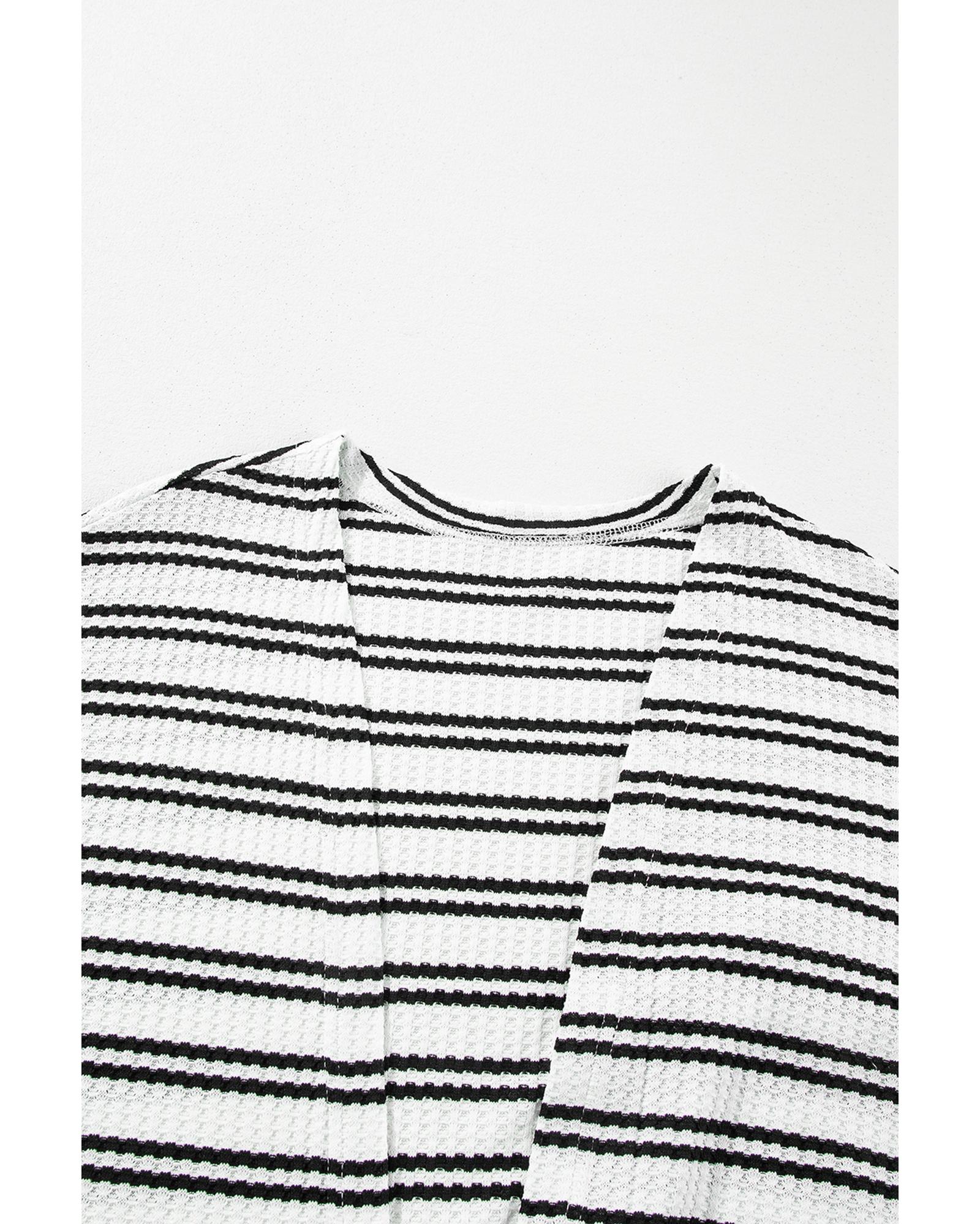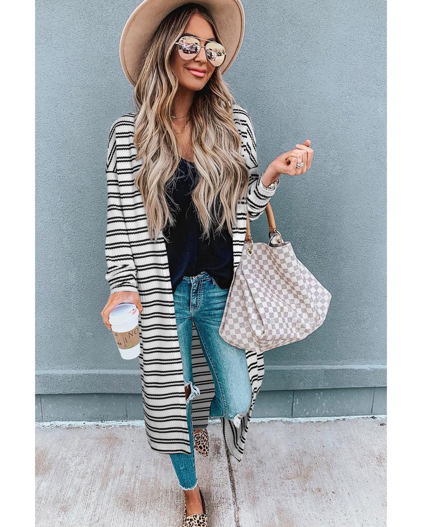 Black Stripe Print Open Front Duster Cardigan – M