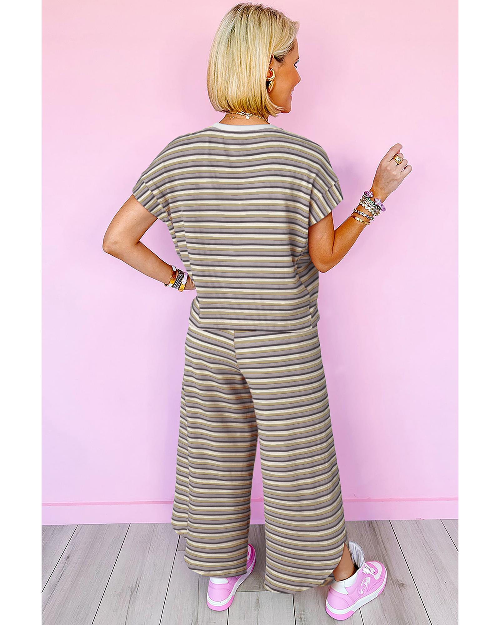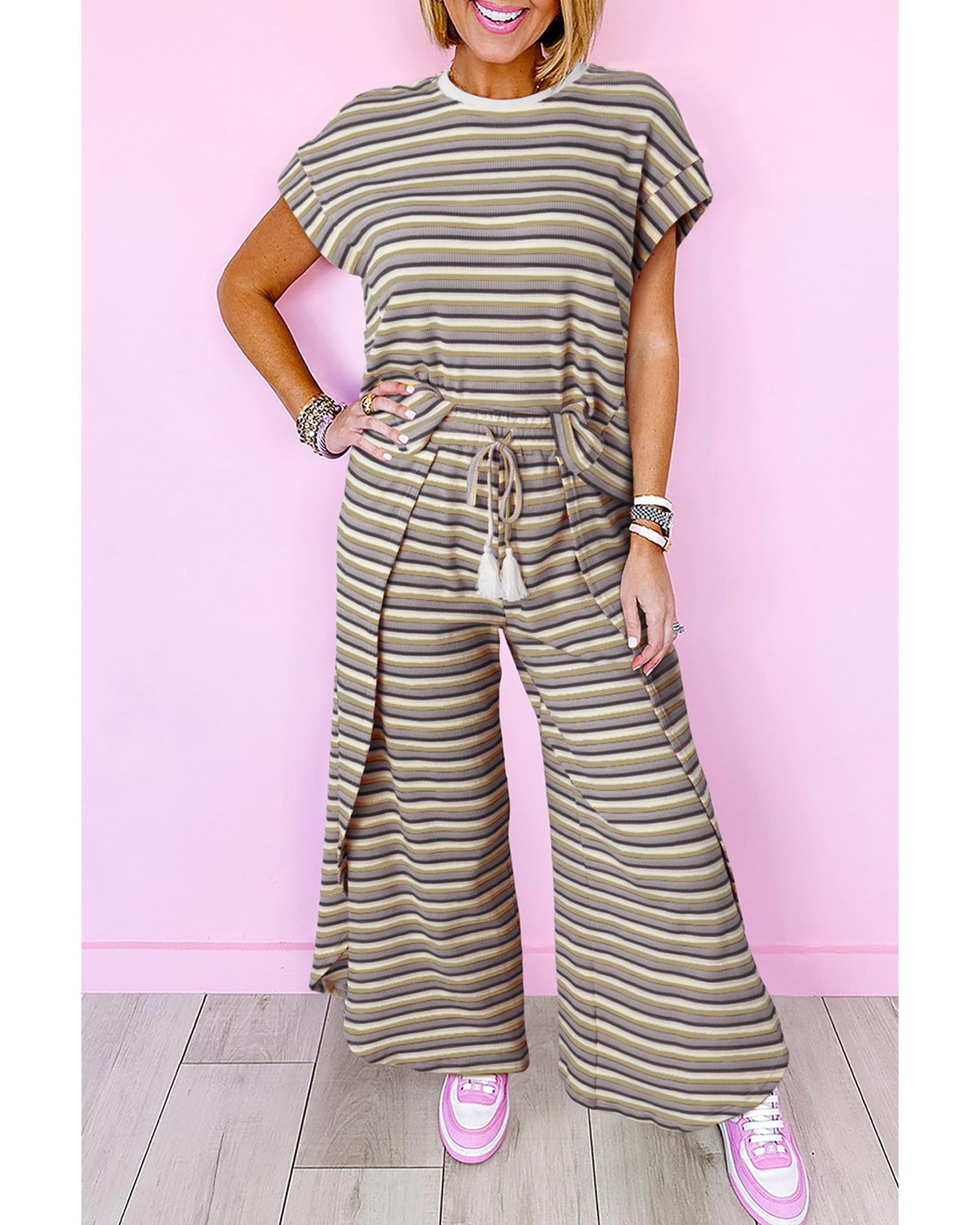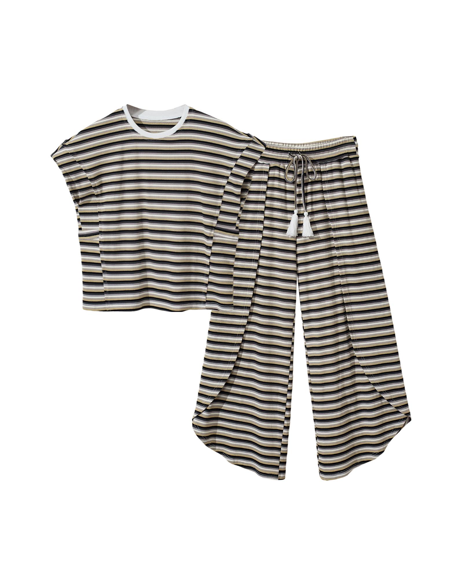 Black Stripe Rainbow Tee Tasseled String Wide Leg Pants Set – M