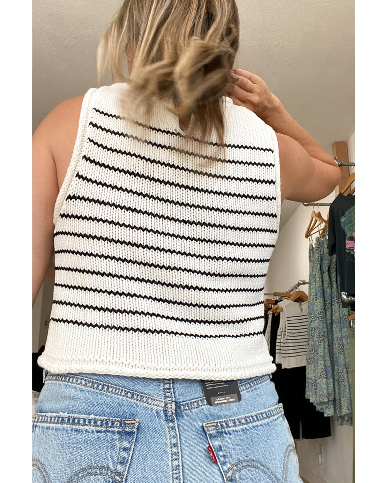 Black Stripe Raw Edge Crew Neck Knitted Vest – M