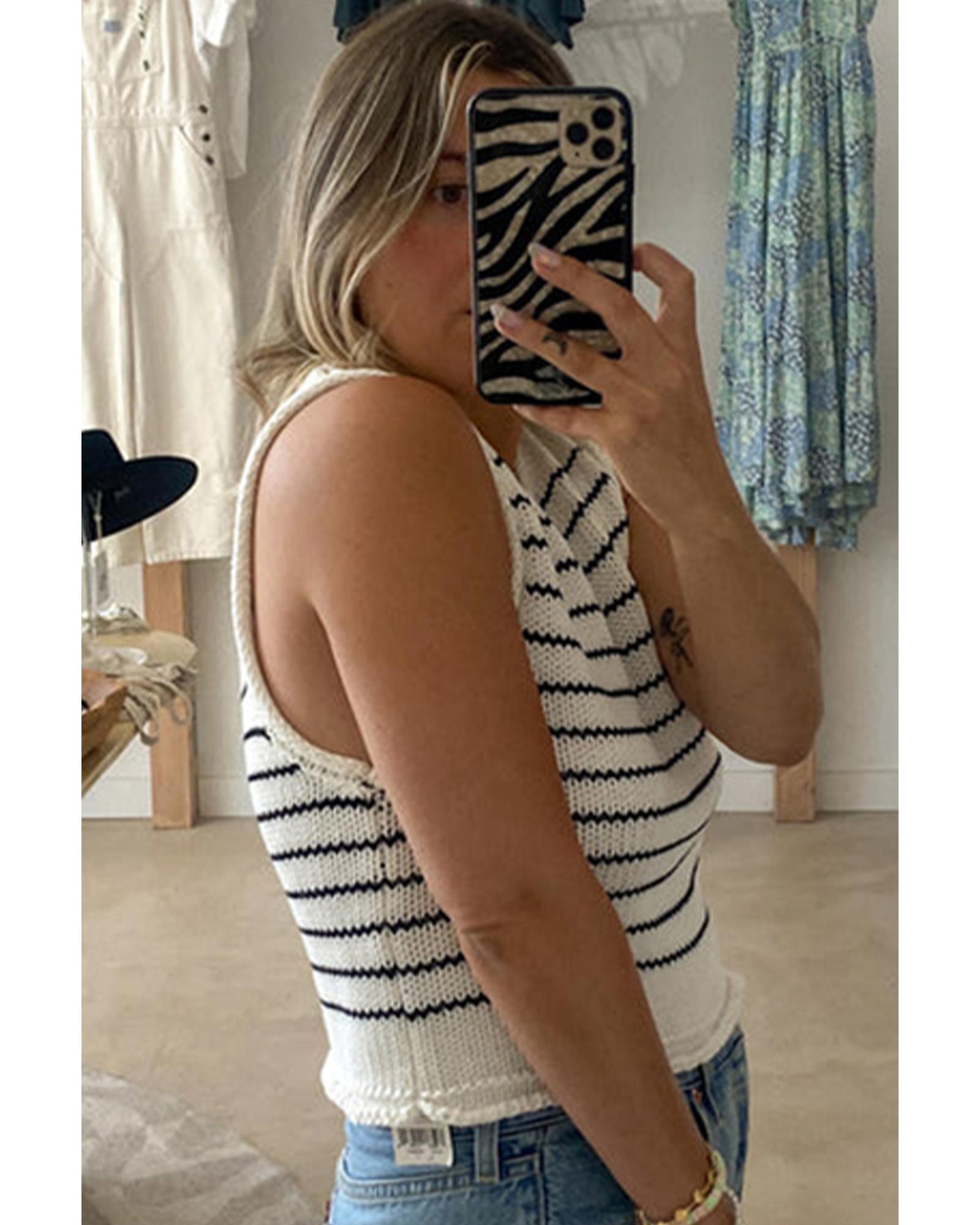 Black Stripe Raw Edge Crew Neck Knitted Vest – S