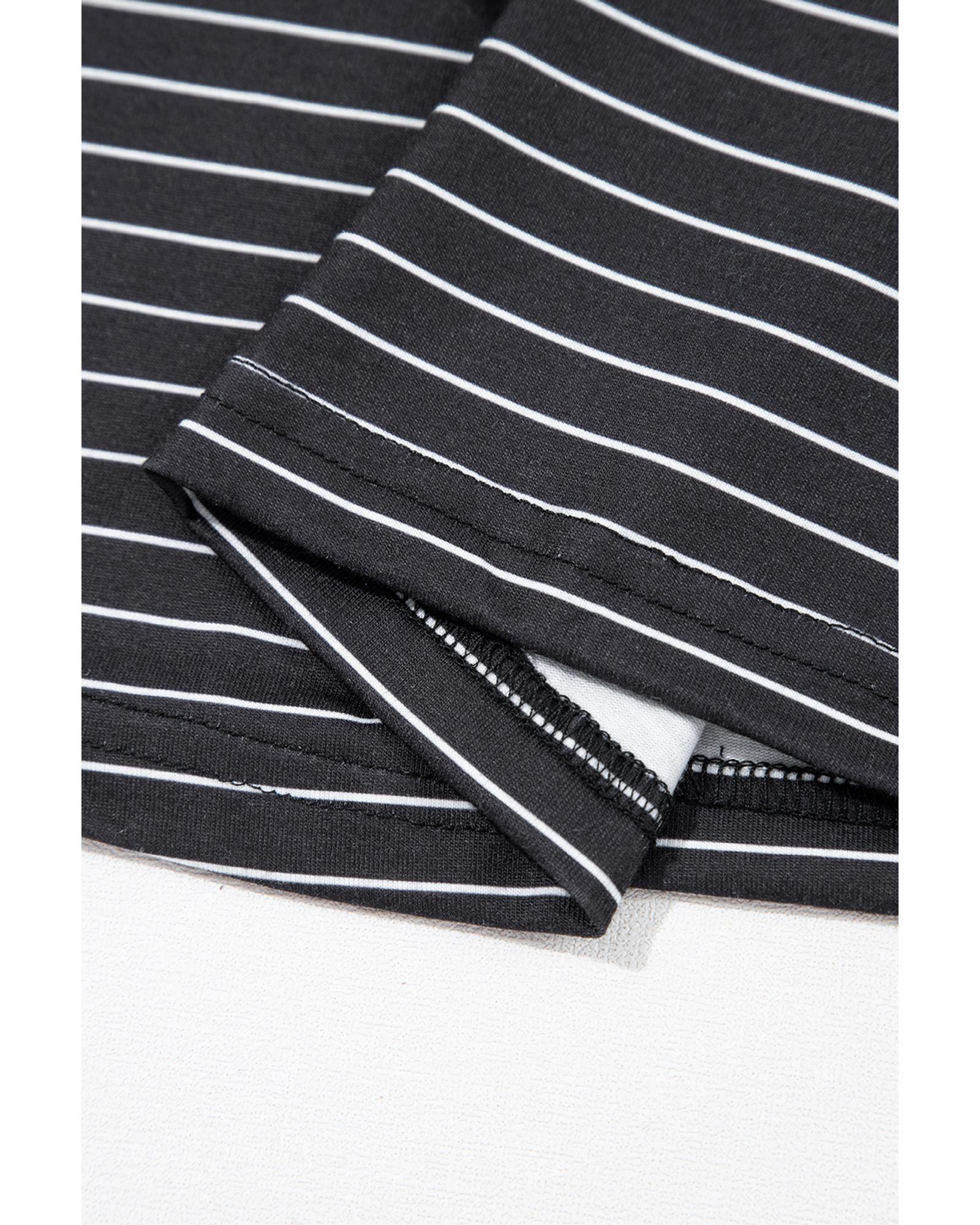 Black Stripe Ruffled Short Sleeve Crew Neck T Shirt Shift Mini Dress – S