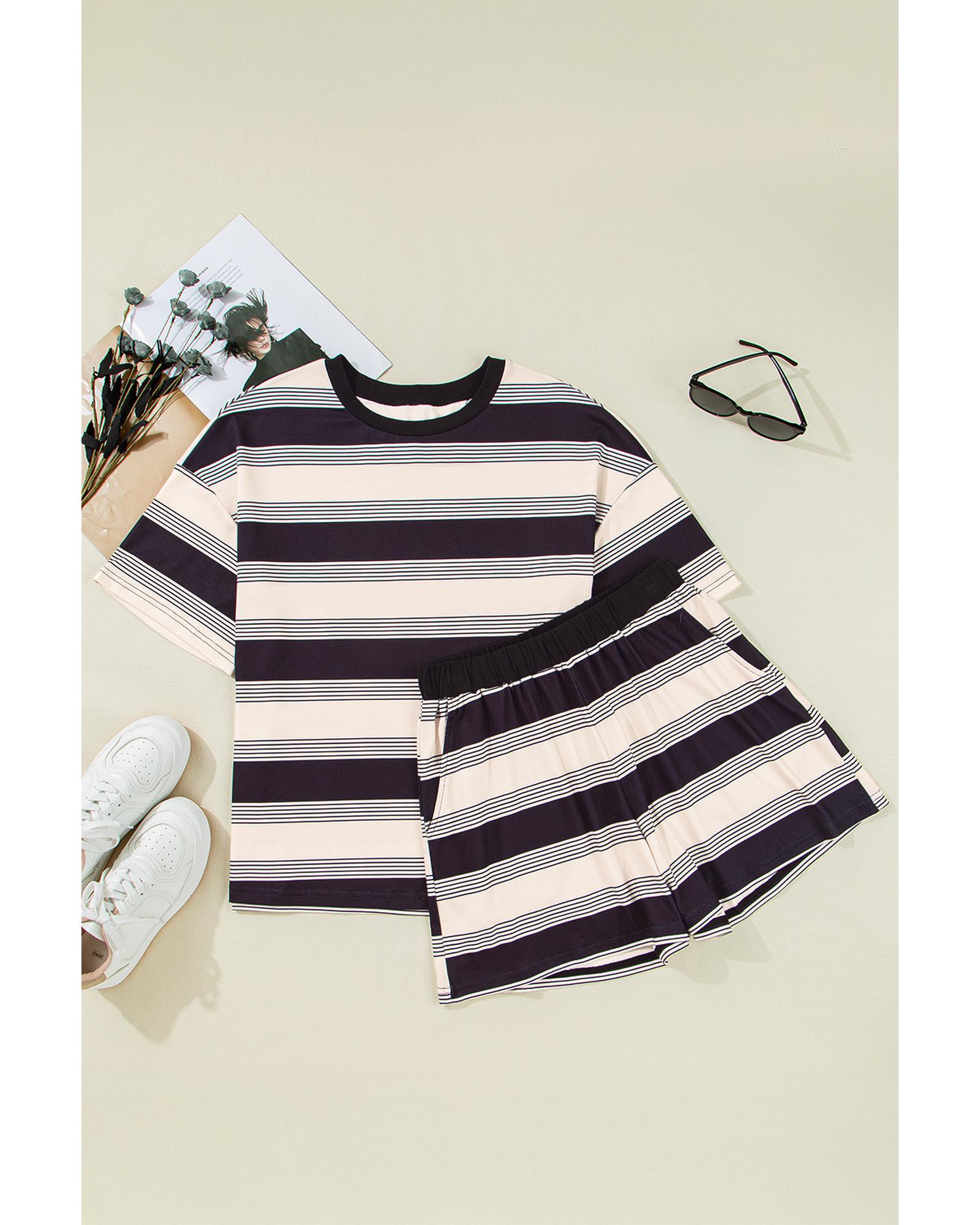 • Classic and fashionable short set with striped pattern