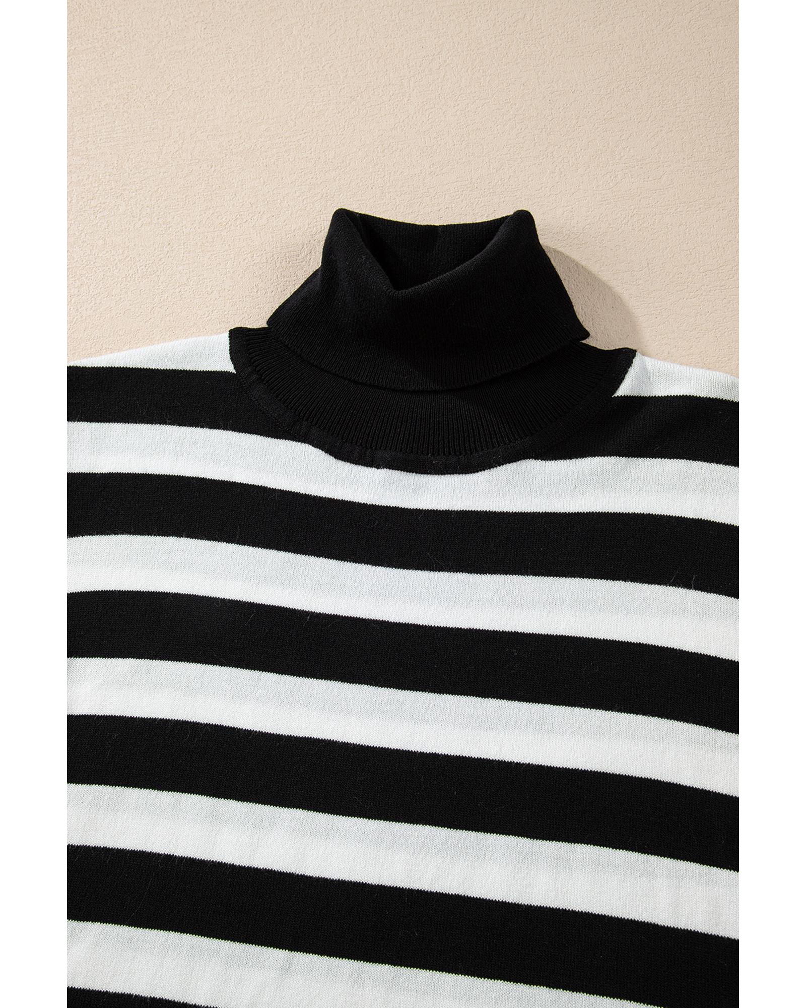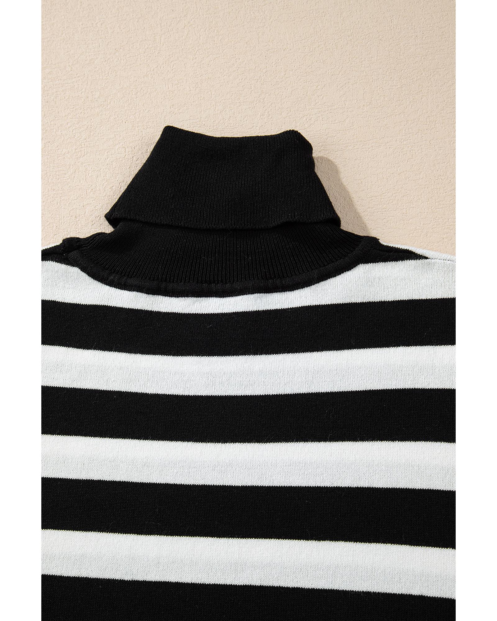 Black Stripe Slim Fit High Neck Knit Sweater – XL