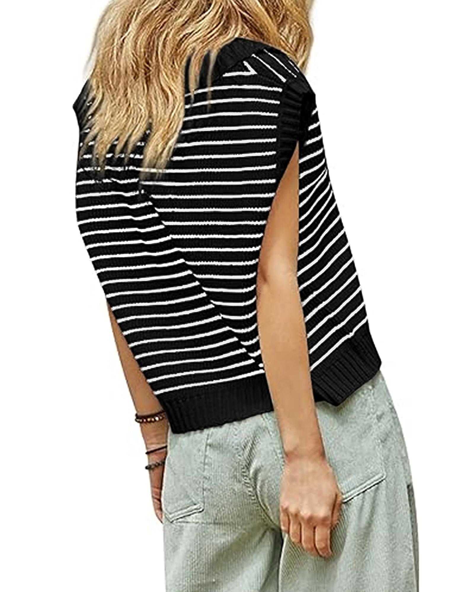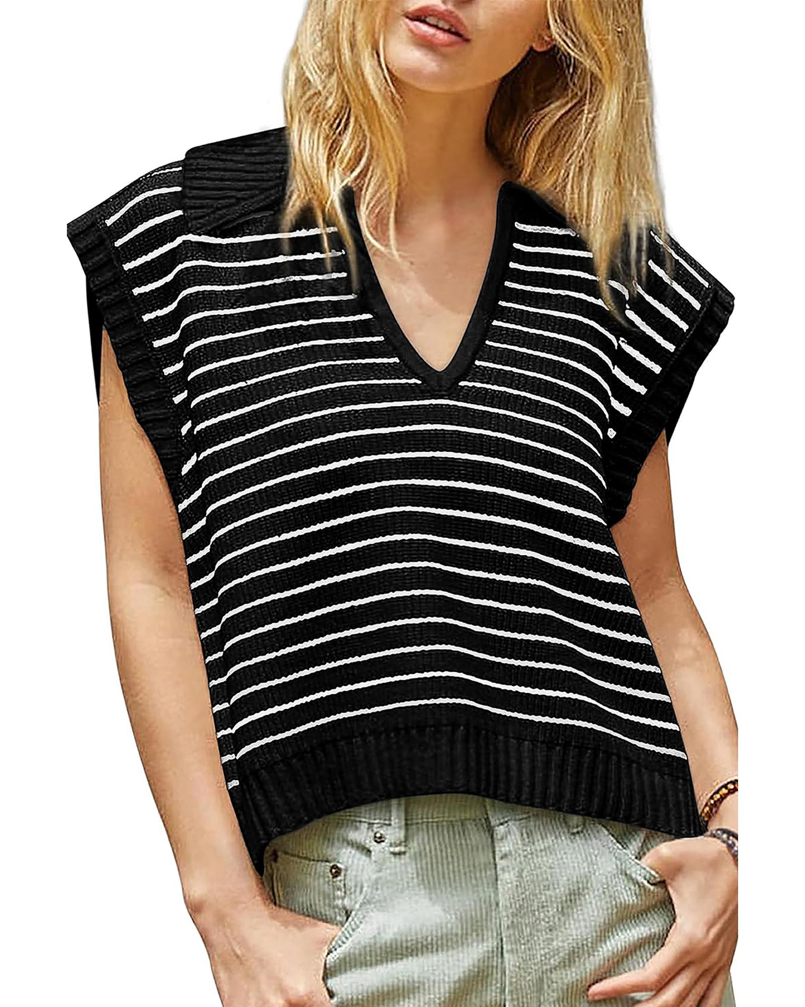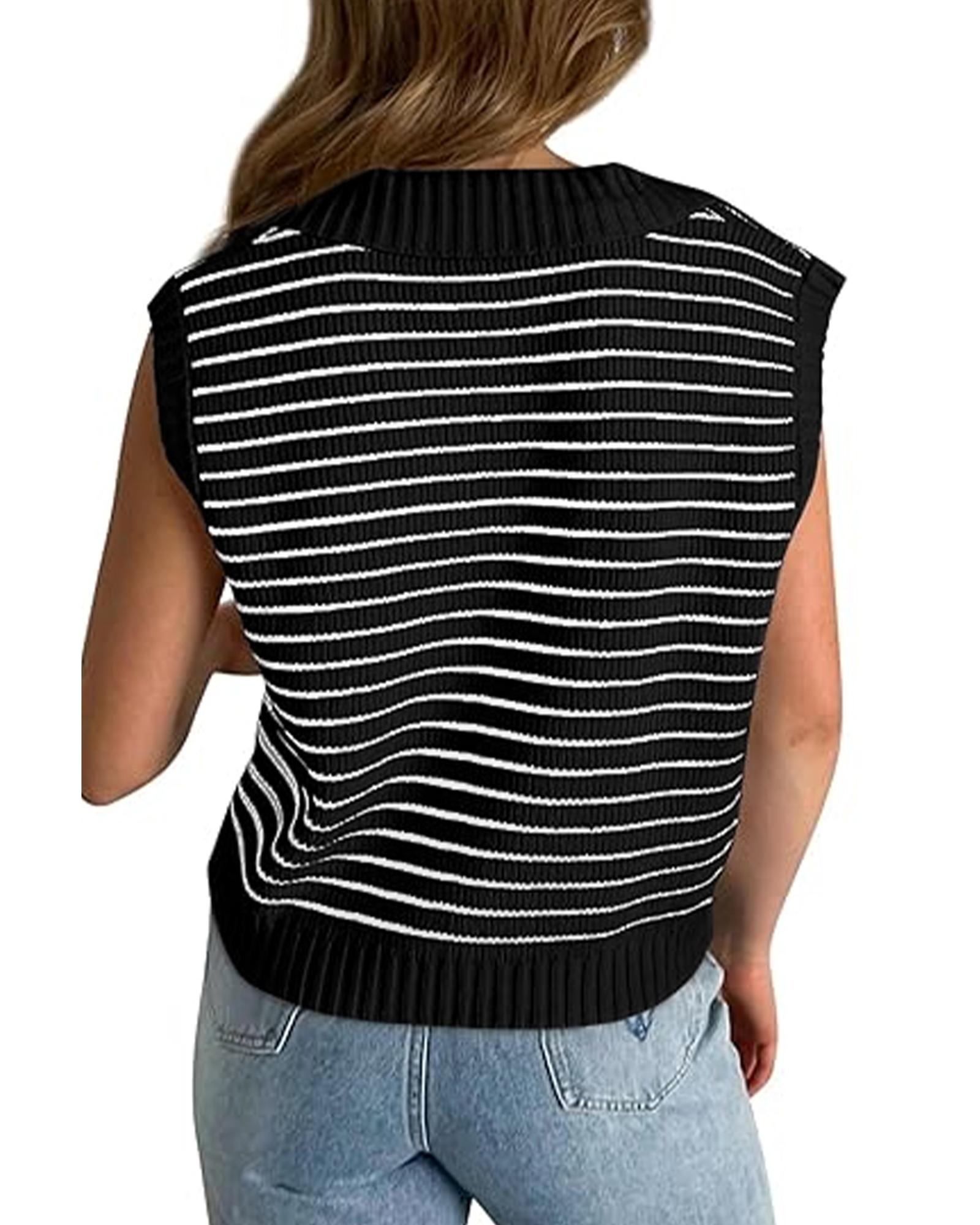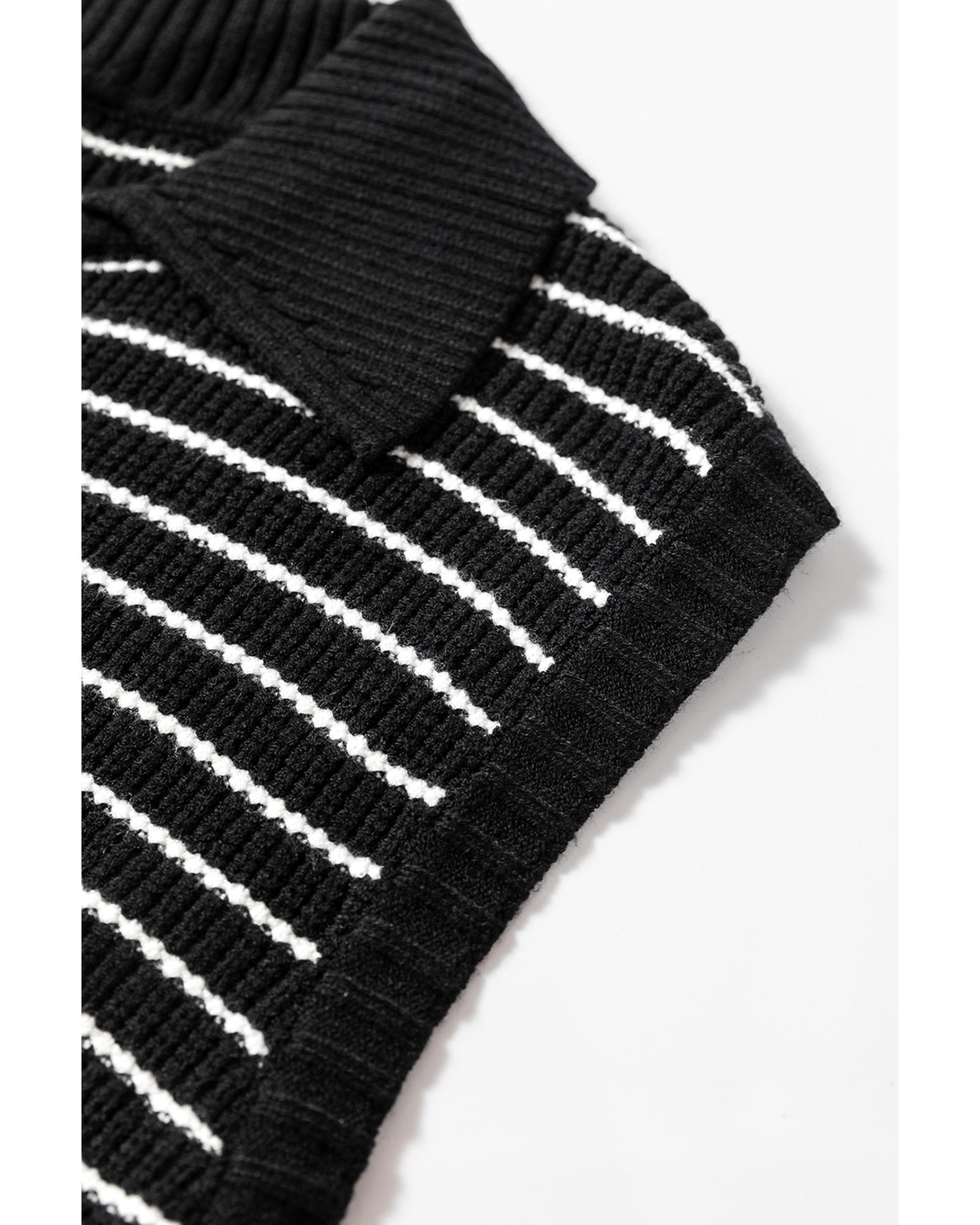 Black Stripe Turn-down V Neck Sweater Tank Top – XL