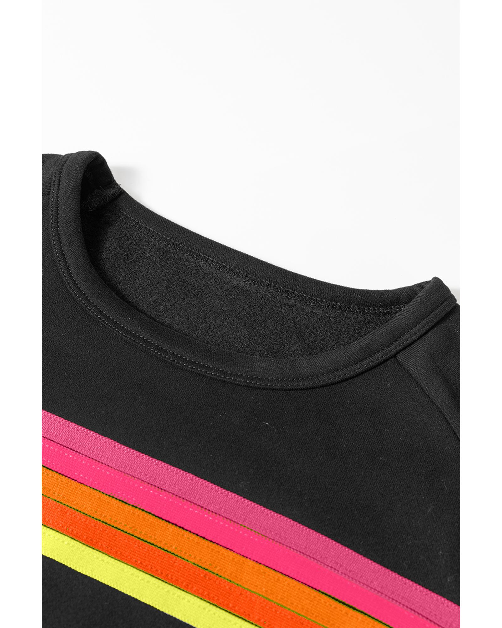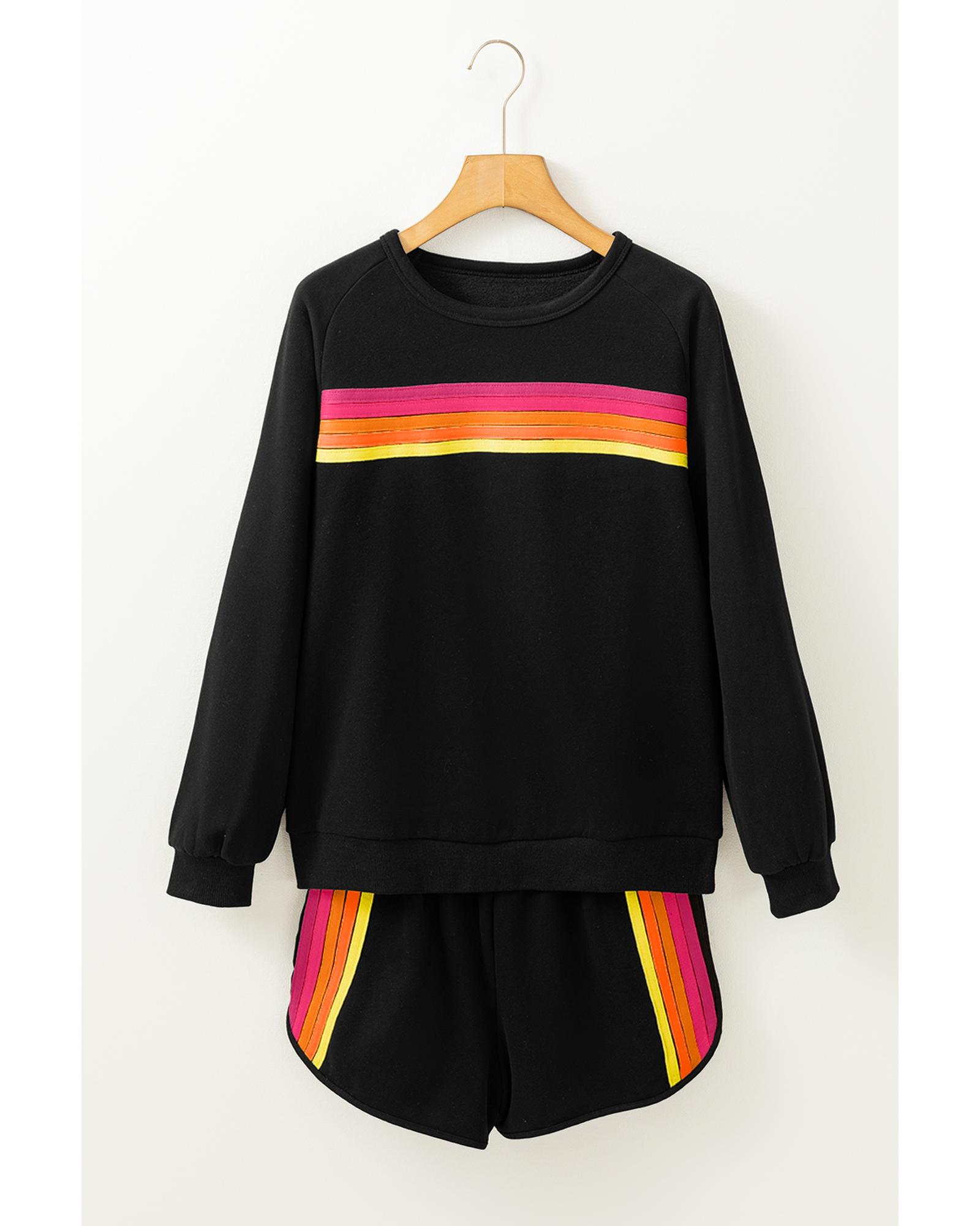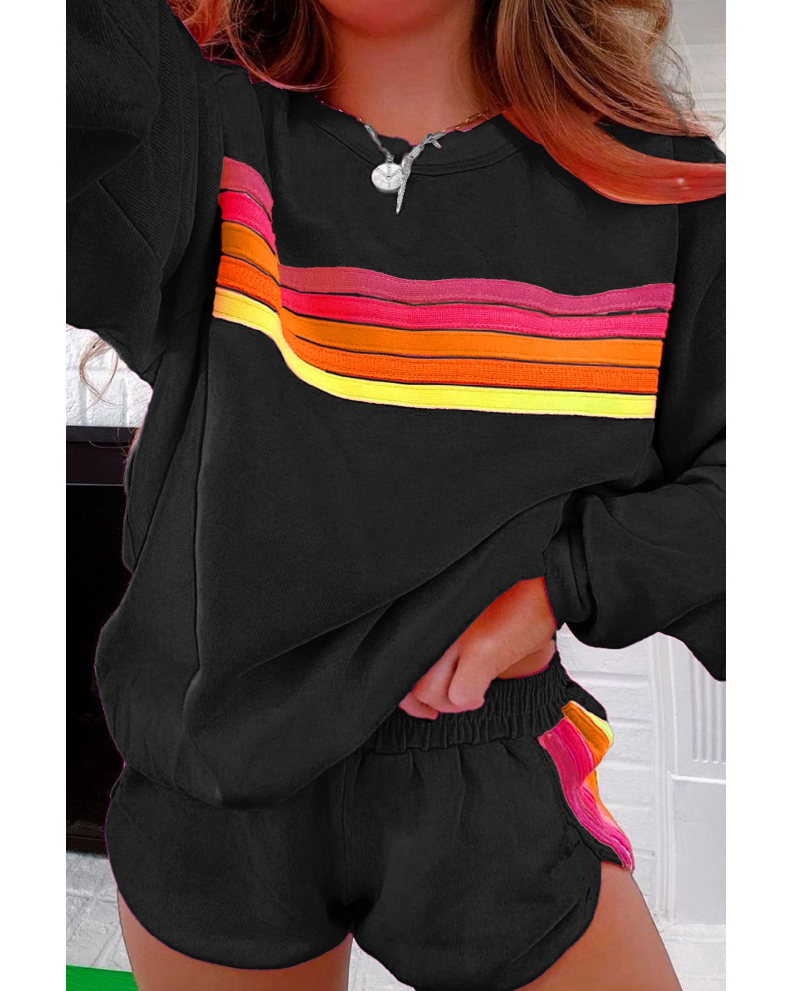Black Striped Accent Pullover and Shorts Two Piece Casual Set – S