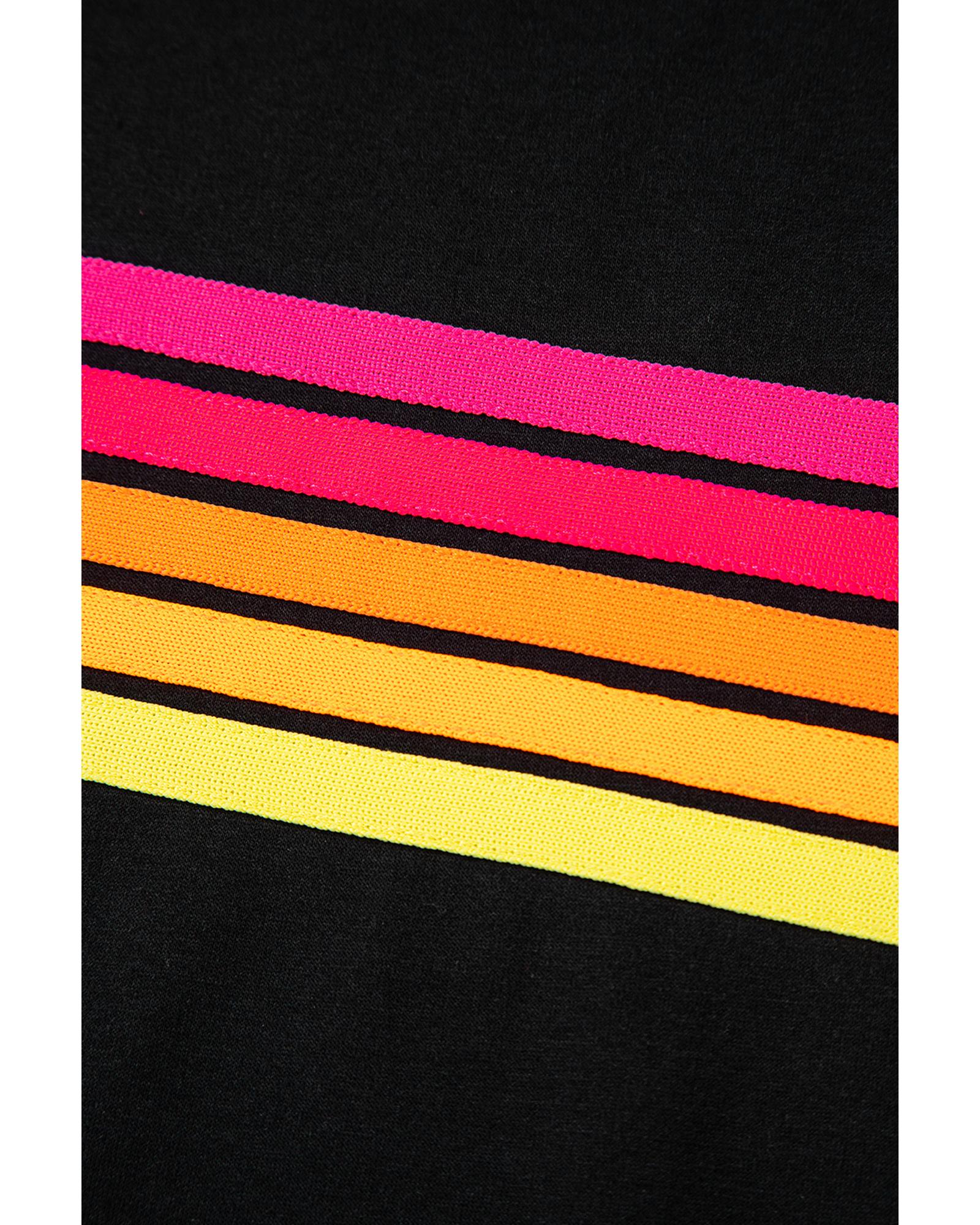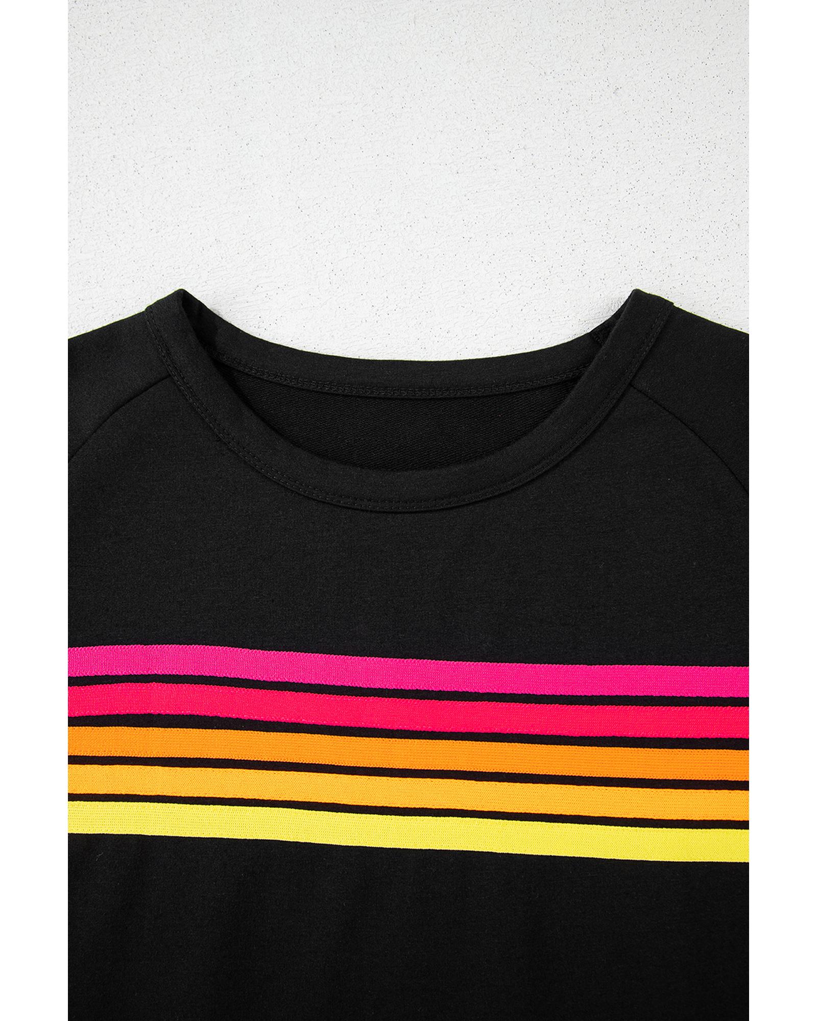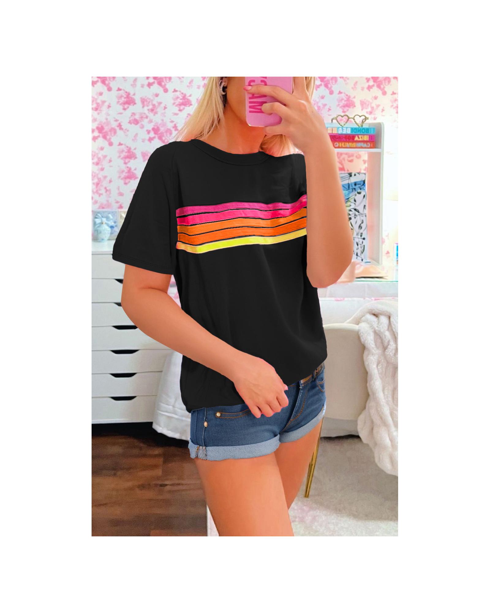 Black Striped Patch Front Casual Tee – M