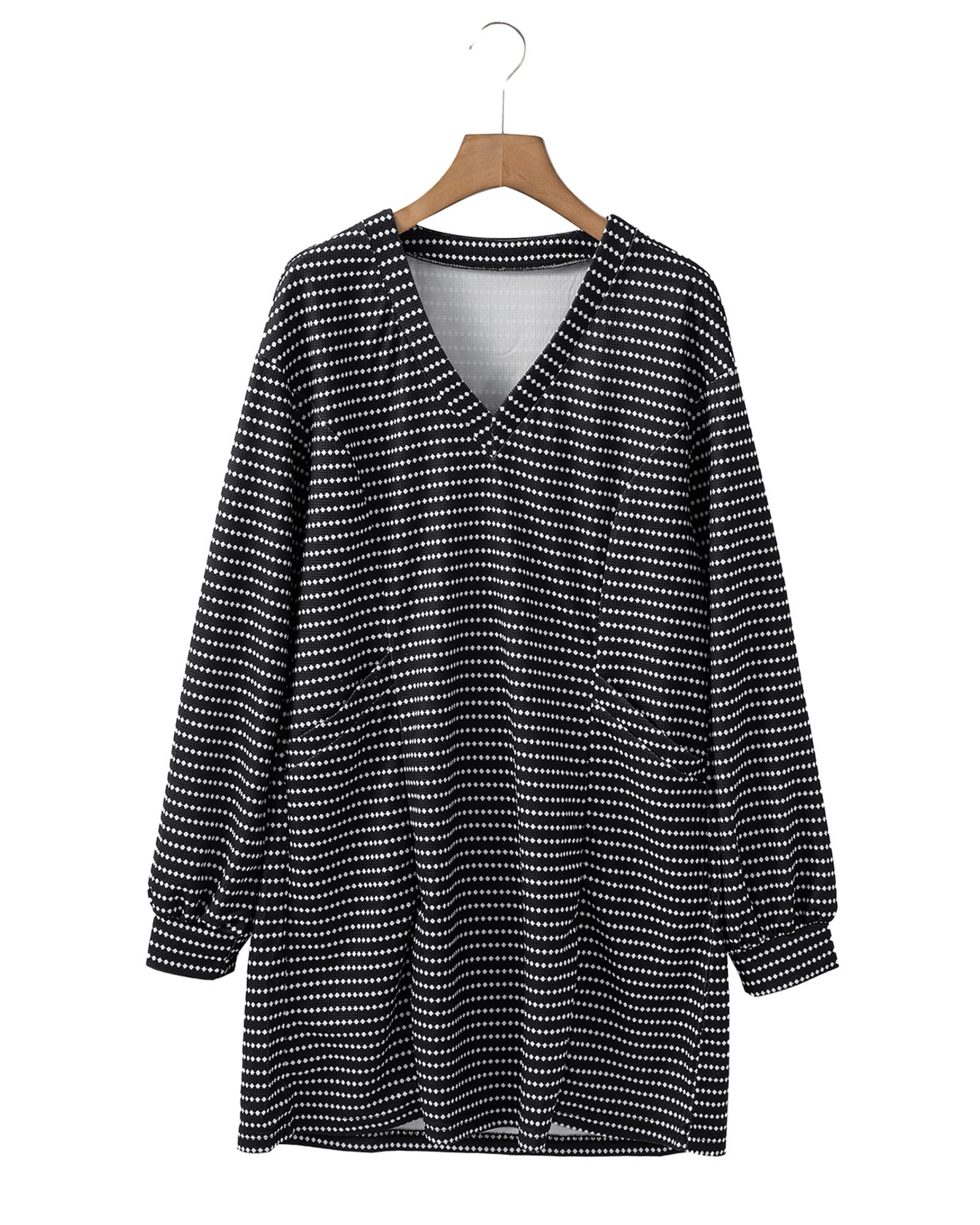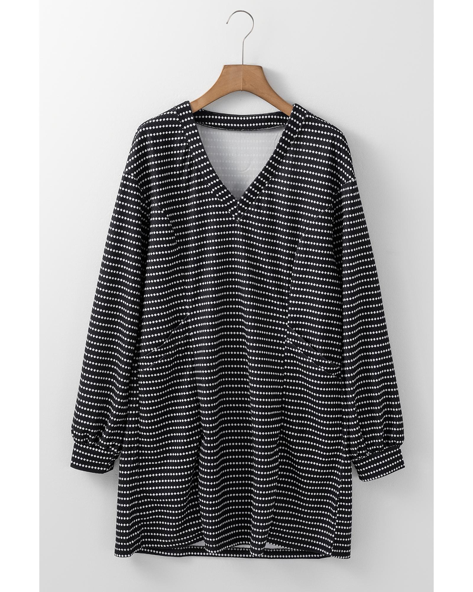 Black Striped V Neck Long Puff Sleeve Shift Dress – XL