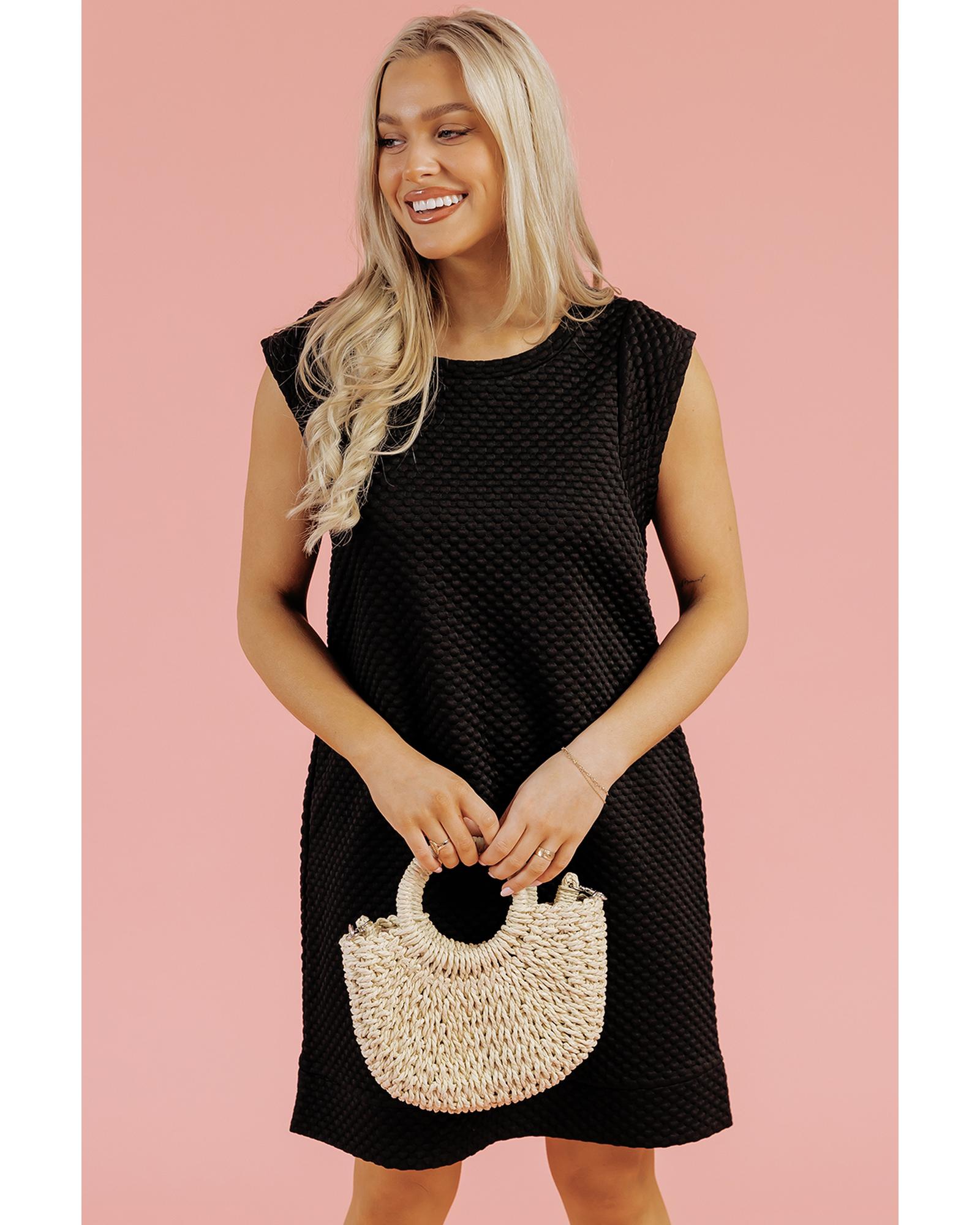 Black Textured Cap Sleeve T-shirt Shift Mini Dress – L