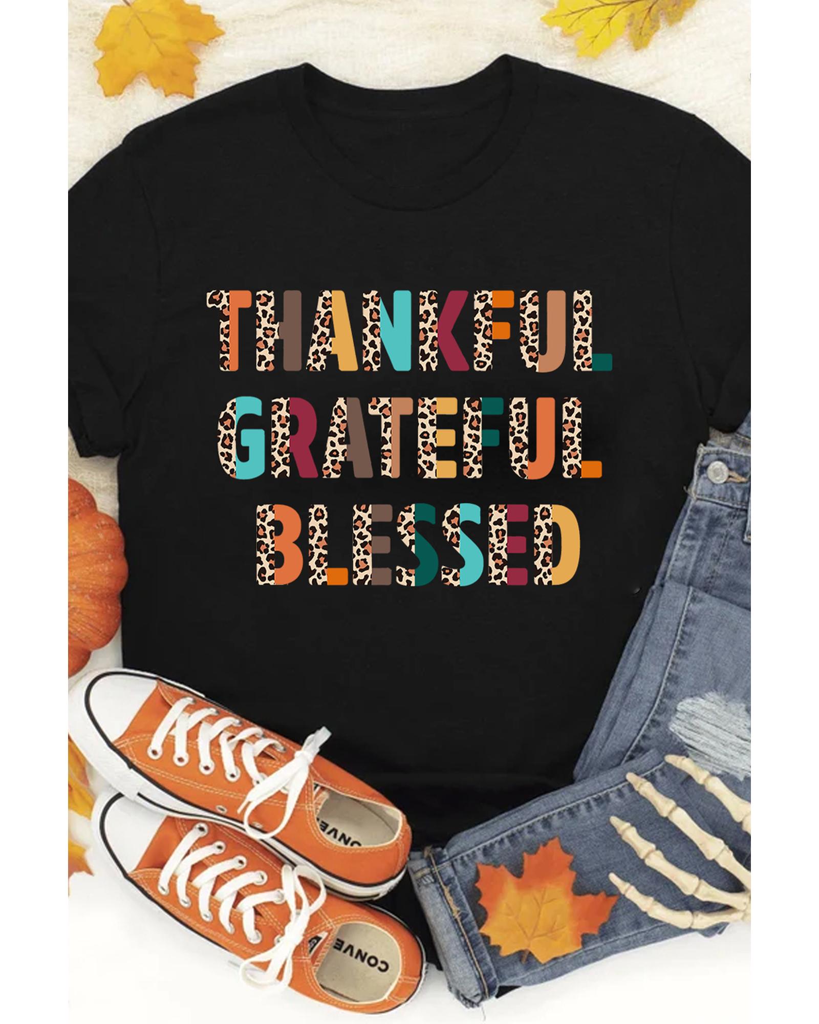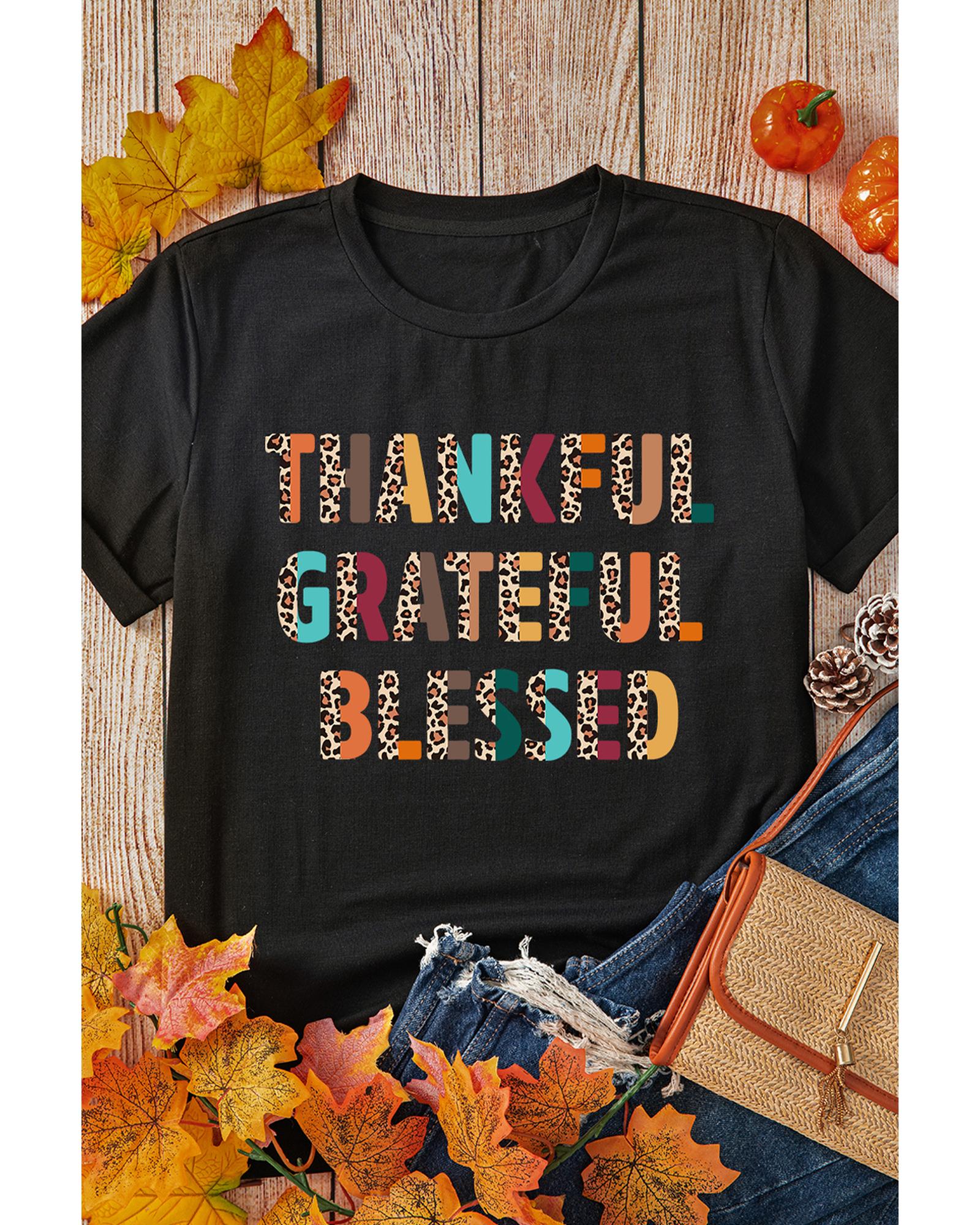 Black Thankful Grateful Blessed Leopard Print Crewneck T Shirt – XL