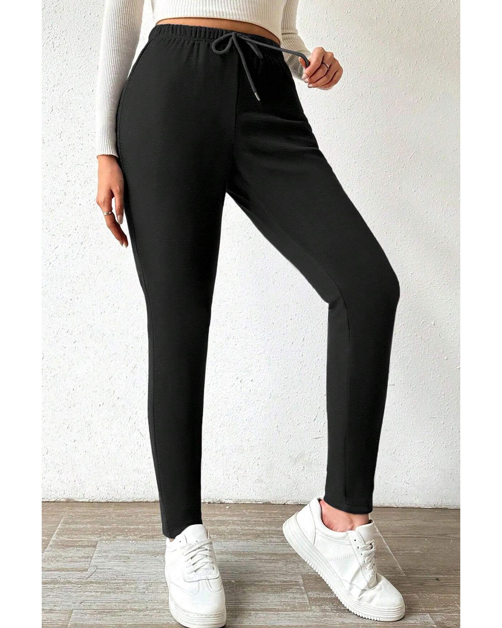Black Thermal Lined Drawstring High Waist Leggings – S