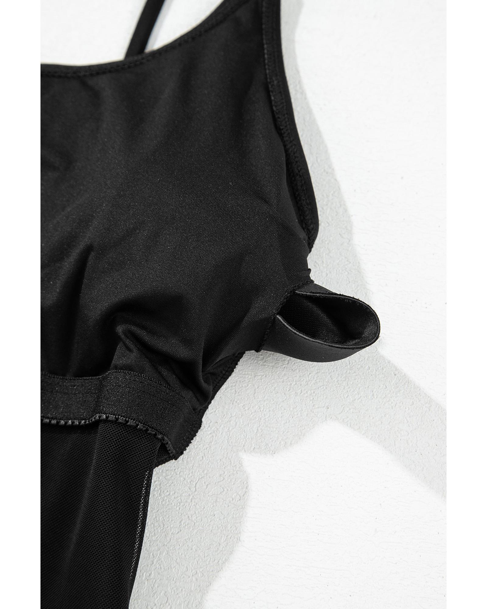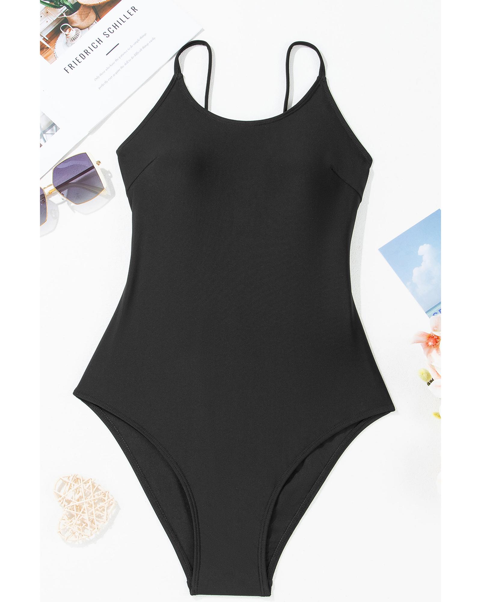 Black Thin Strap Strappy Lace-up Open Back One Piece Swimsuit - S