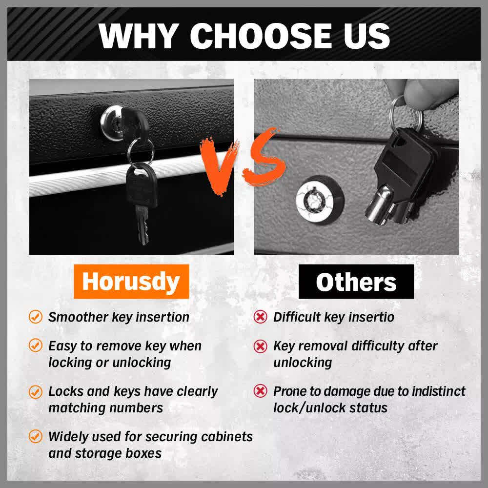 - Ample storage space with 7 drawers and premium cam locks for added security.