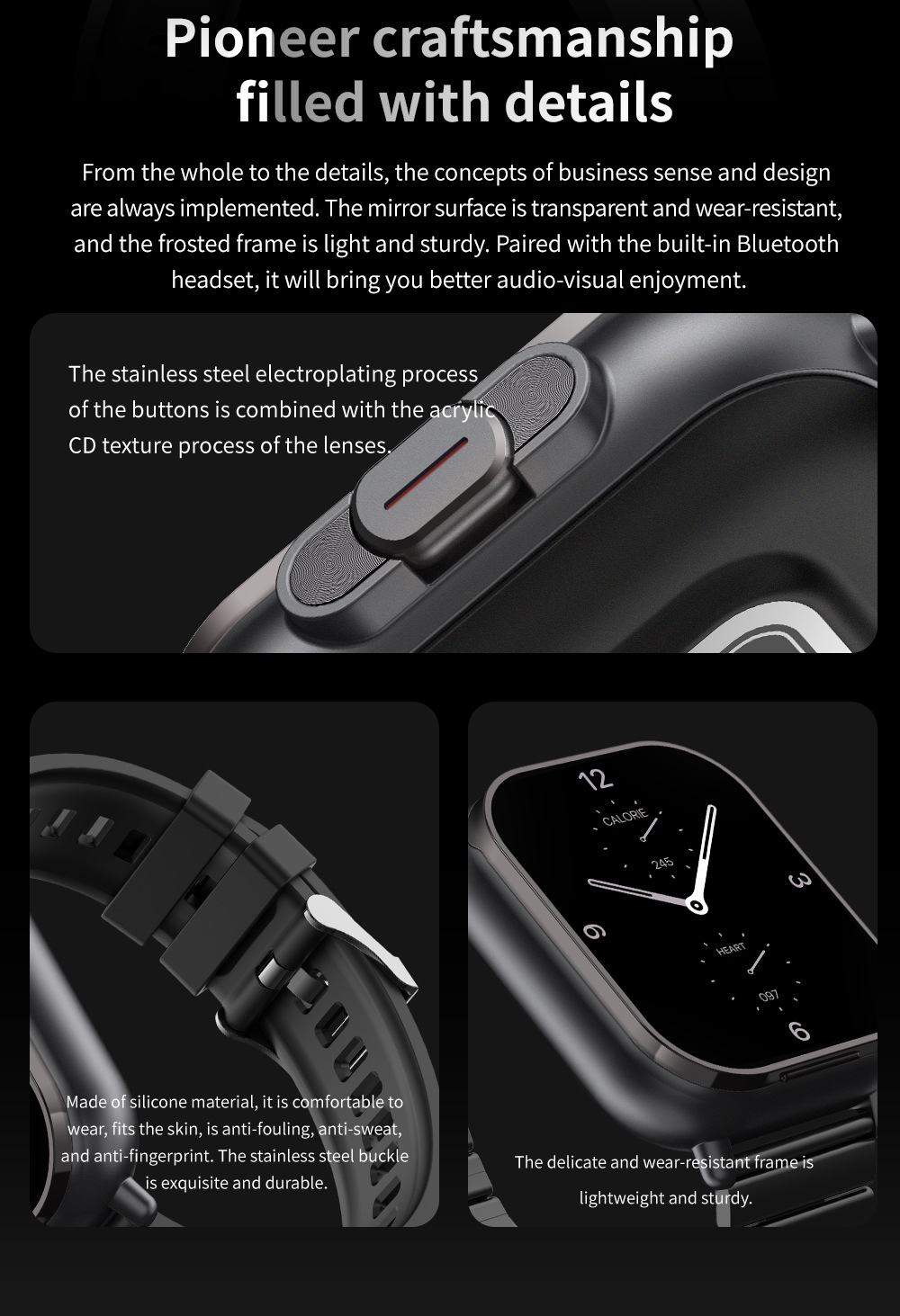 • High-Quality Wireless Earbuds: Enjoy crisp audio with Bluetooth 5.3 (AD6973D4 chip) for stable connection and low latency. Conveniently stored and charged inside the watch.