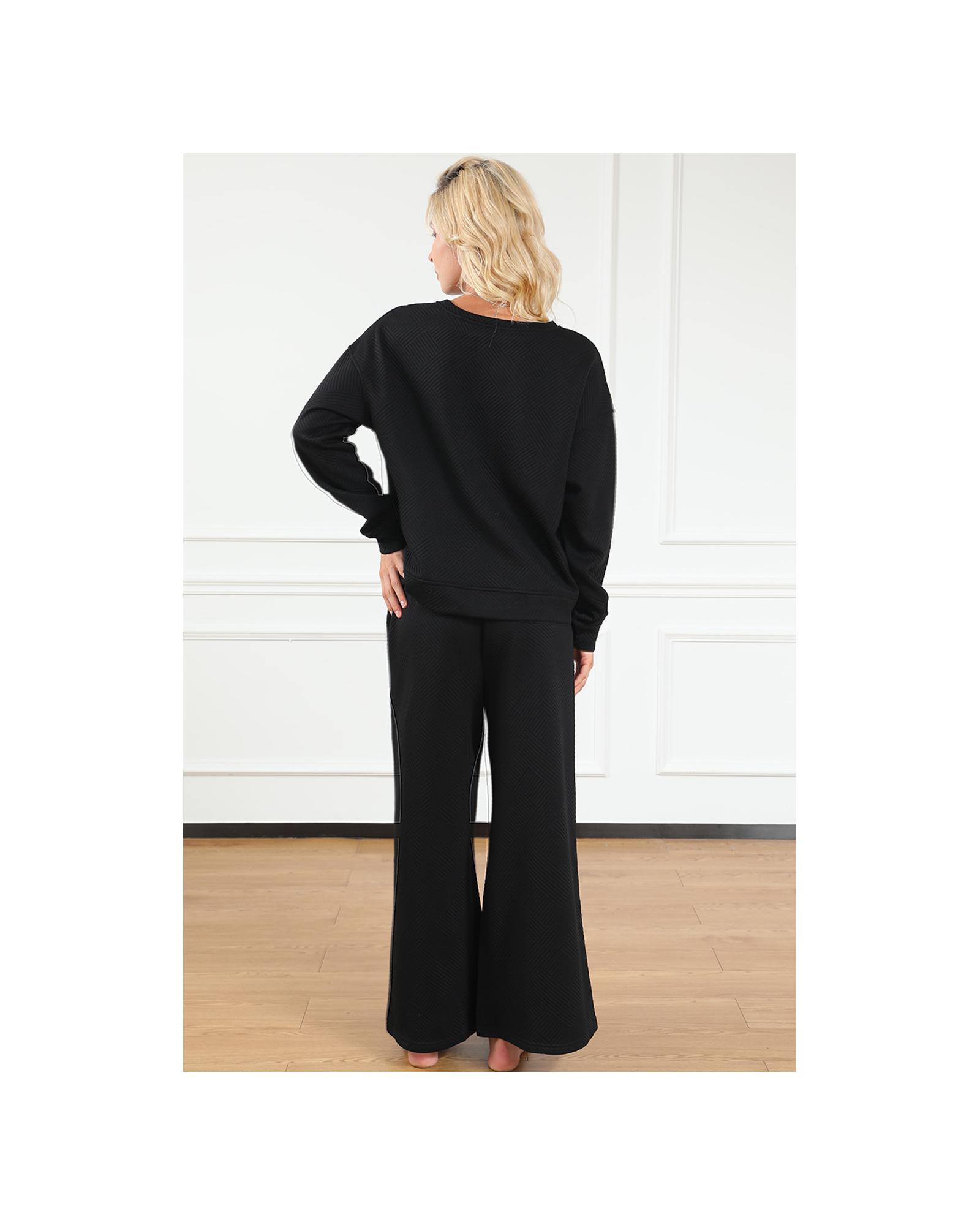 Black Ultra Loose Textured 2pcs Slouchy Outfit – M