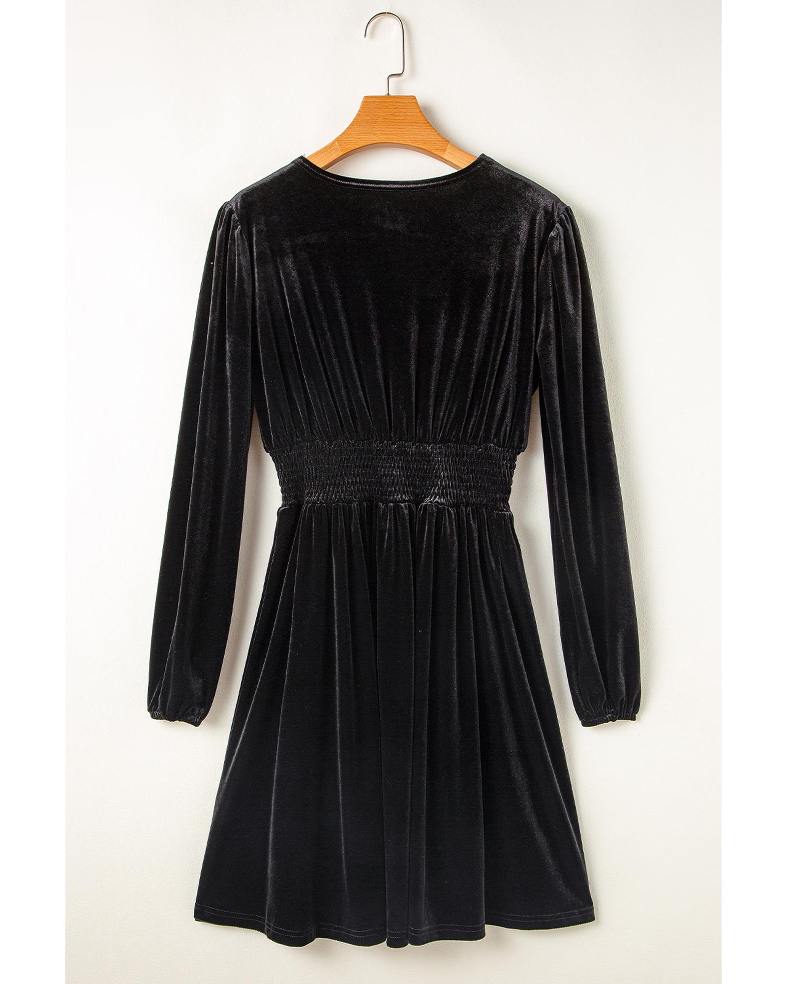 Black Velvet Long Sleeve Surplice High Waist Mini Dress – XL