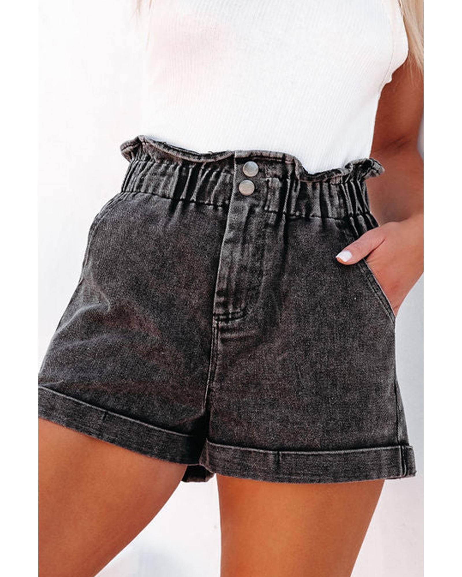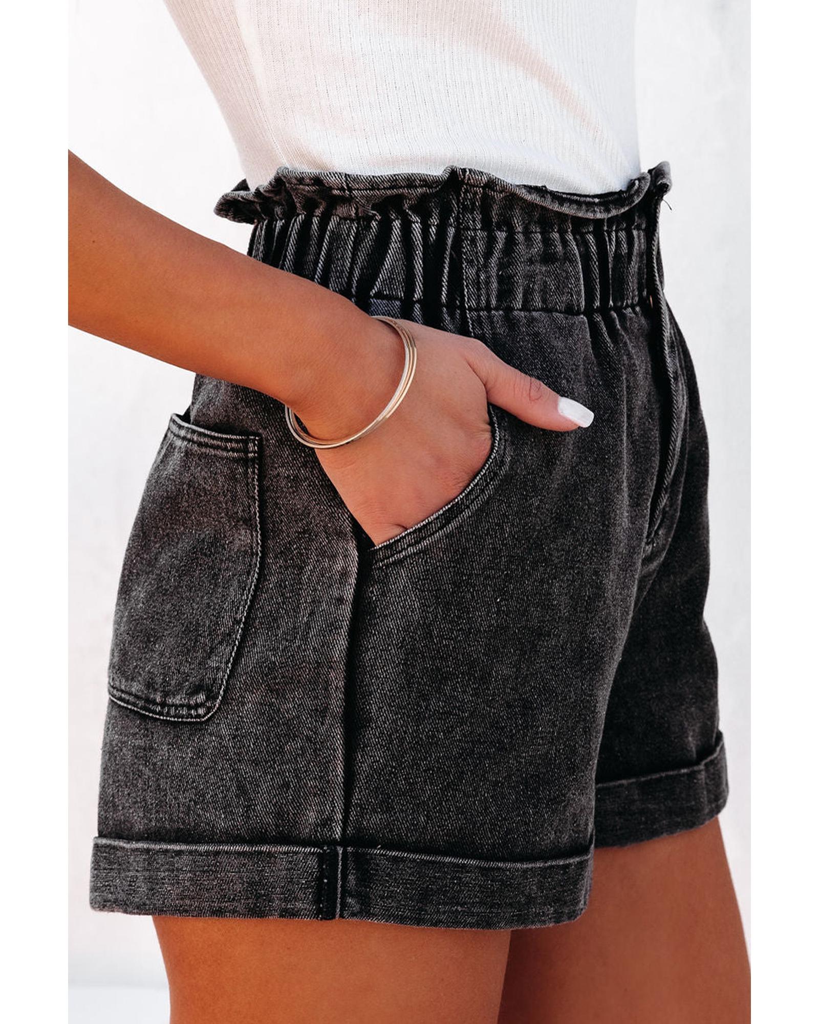 Black Vintage Washed Frilled High Waist Denim Shorts – 16 US