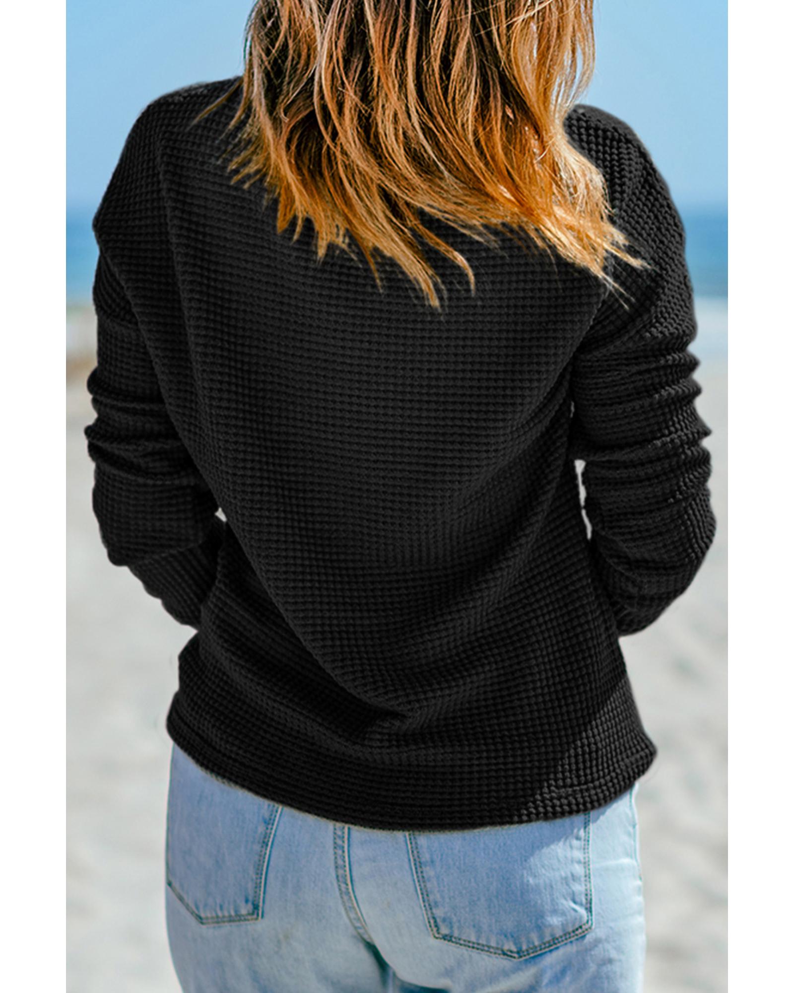 Black Waffle Knit Drop Shoulder Long Sleeve Top – M