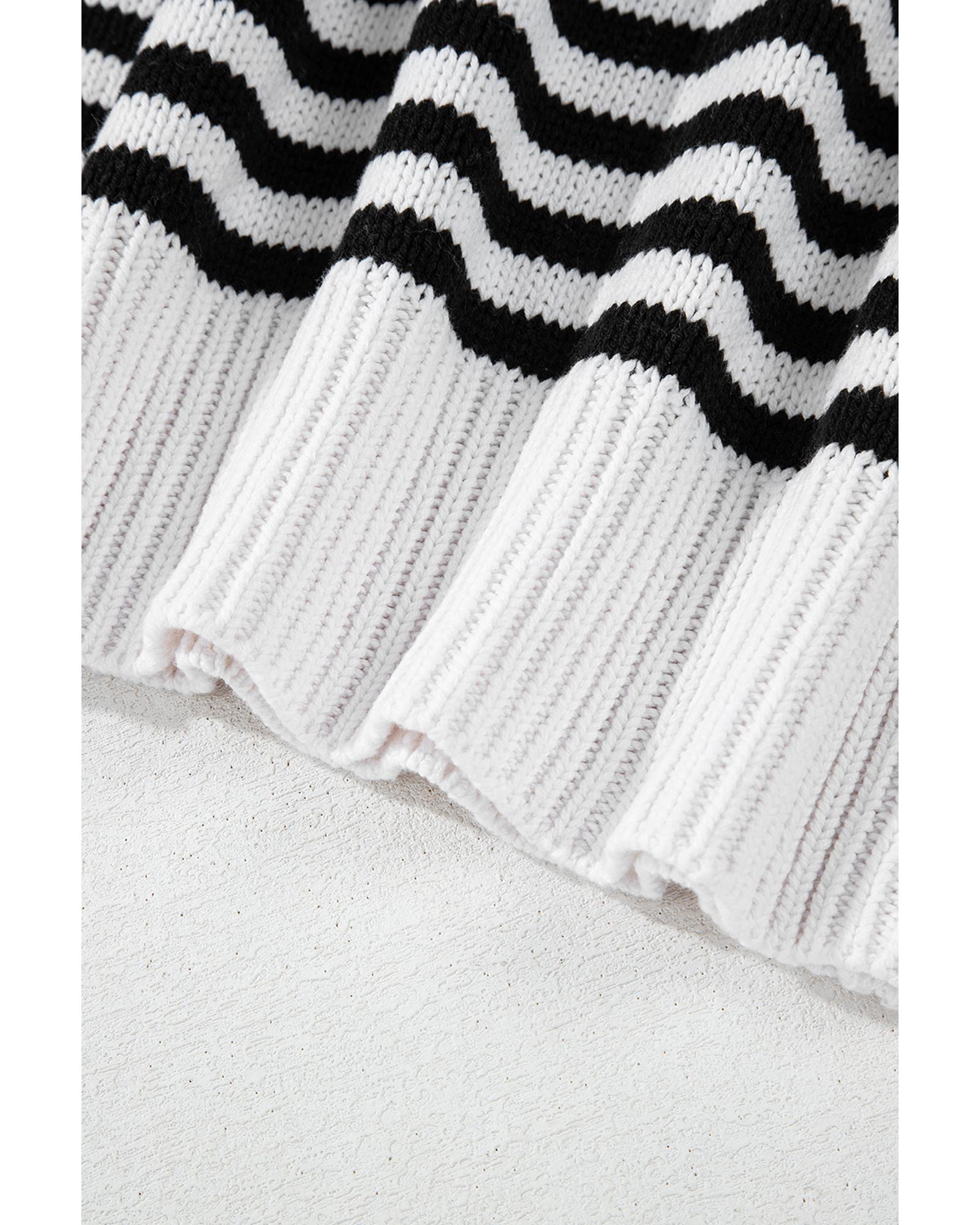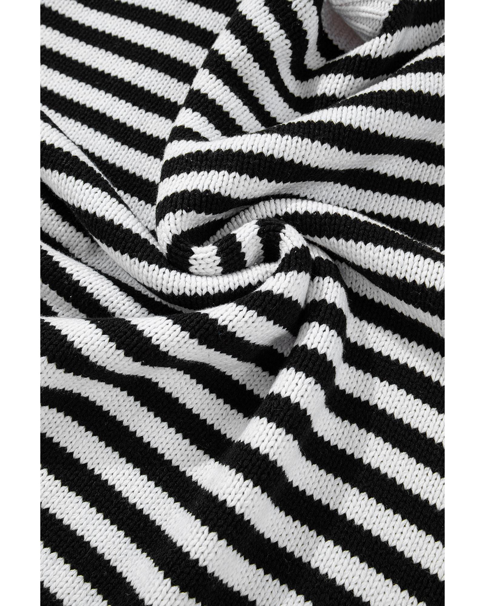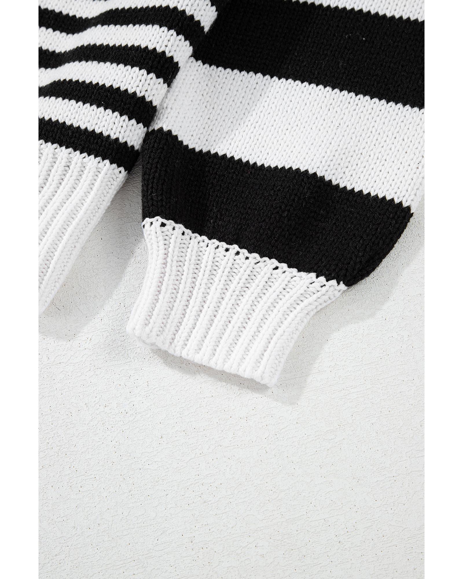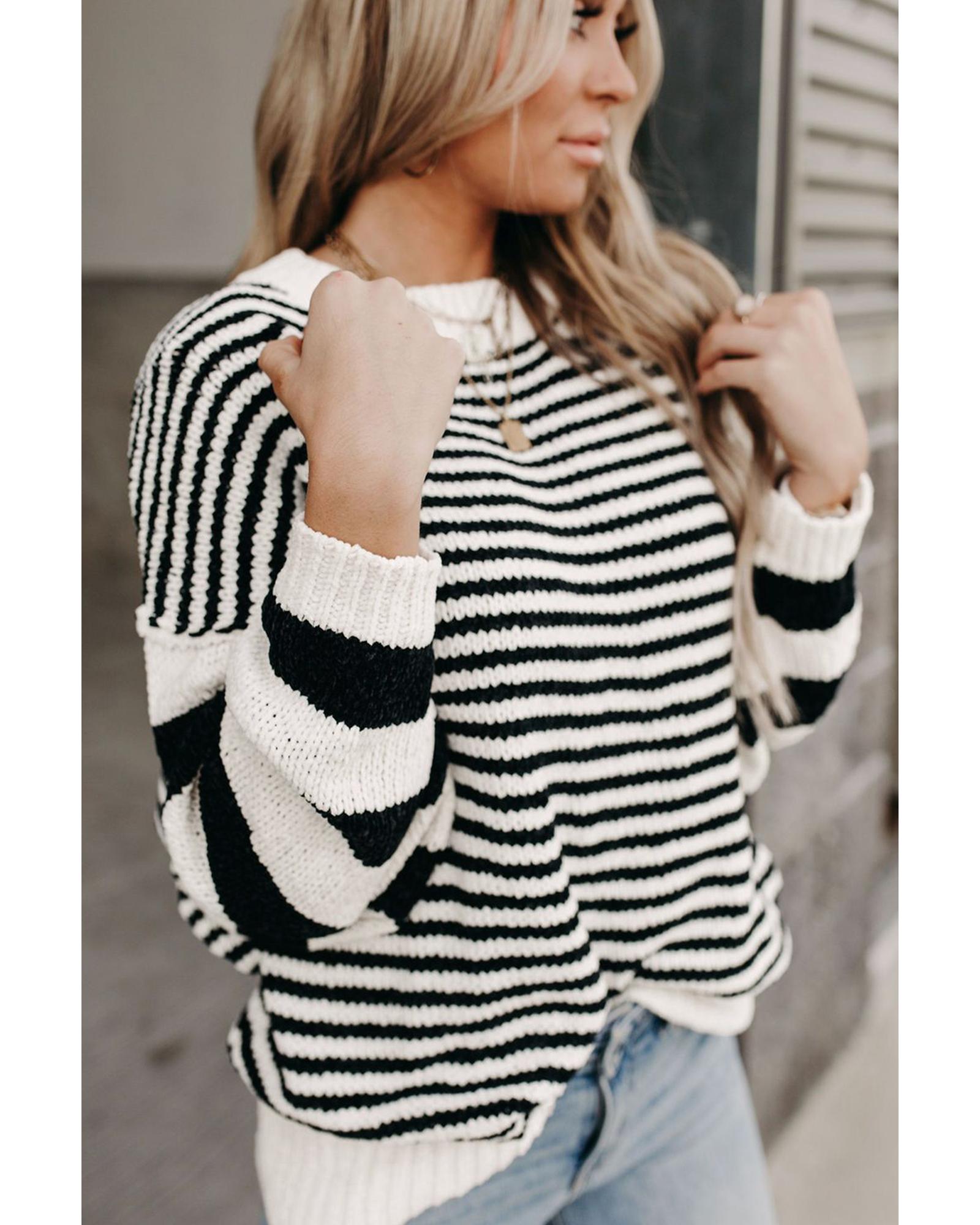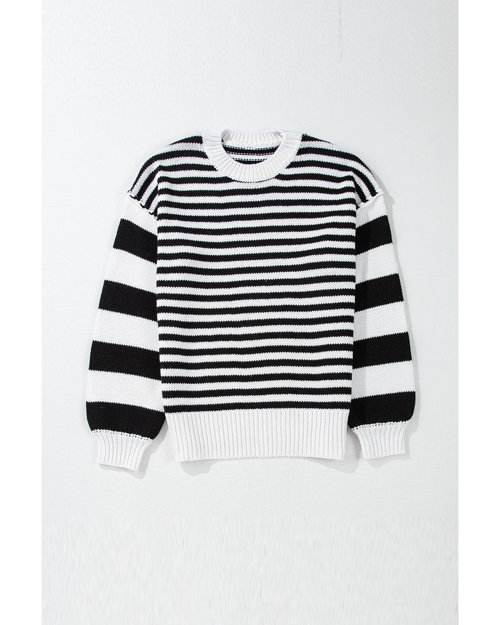 Black white Striped Drop Shoulder Bishop Sleeve Knit Sweater – XL