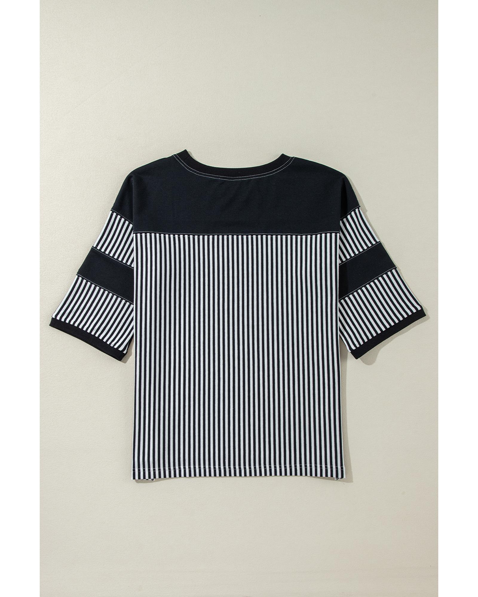 Black White Striped Patchwork 3/4 Sleeve Oversize Top – M