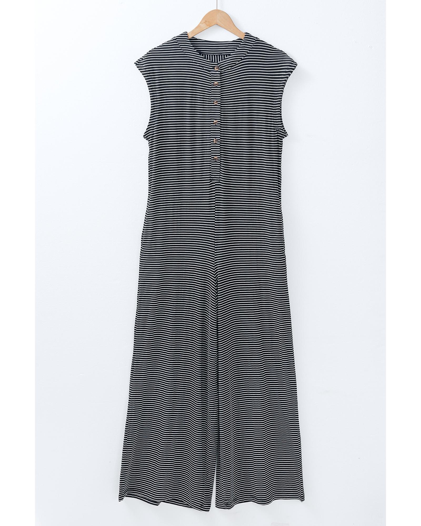 Black white Striped Print Buttoned Wide Leg Sleeveless Jumpsuit – L