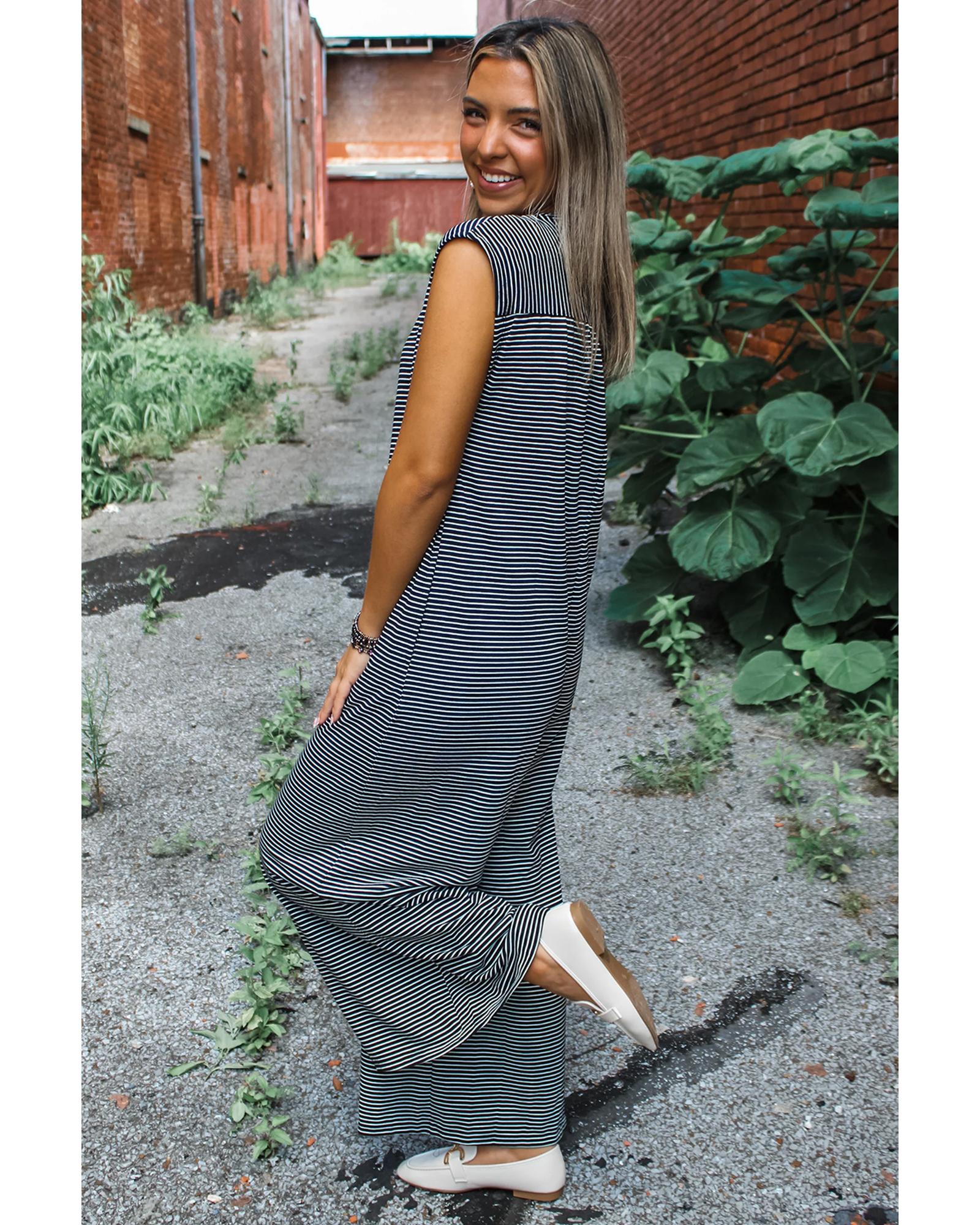 Black white Striped Print Buttoned Wide Leg Sleeveless Jumpsuit – S