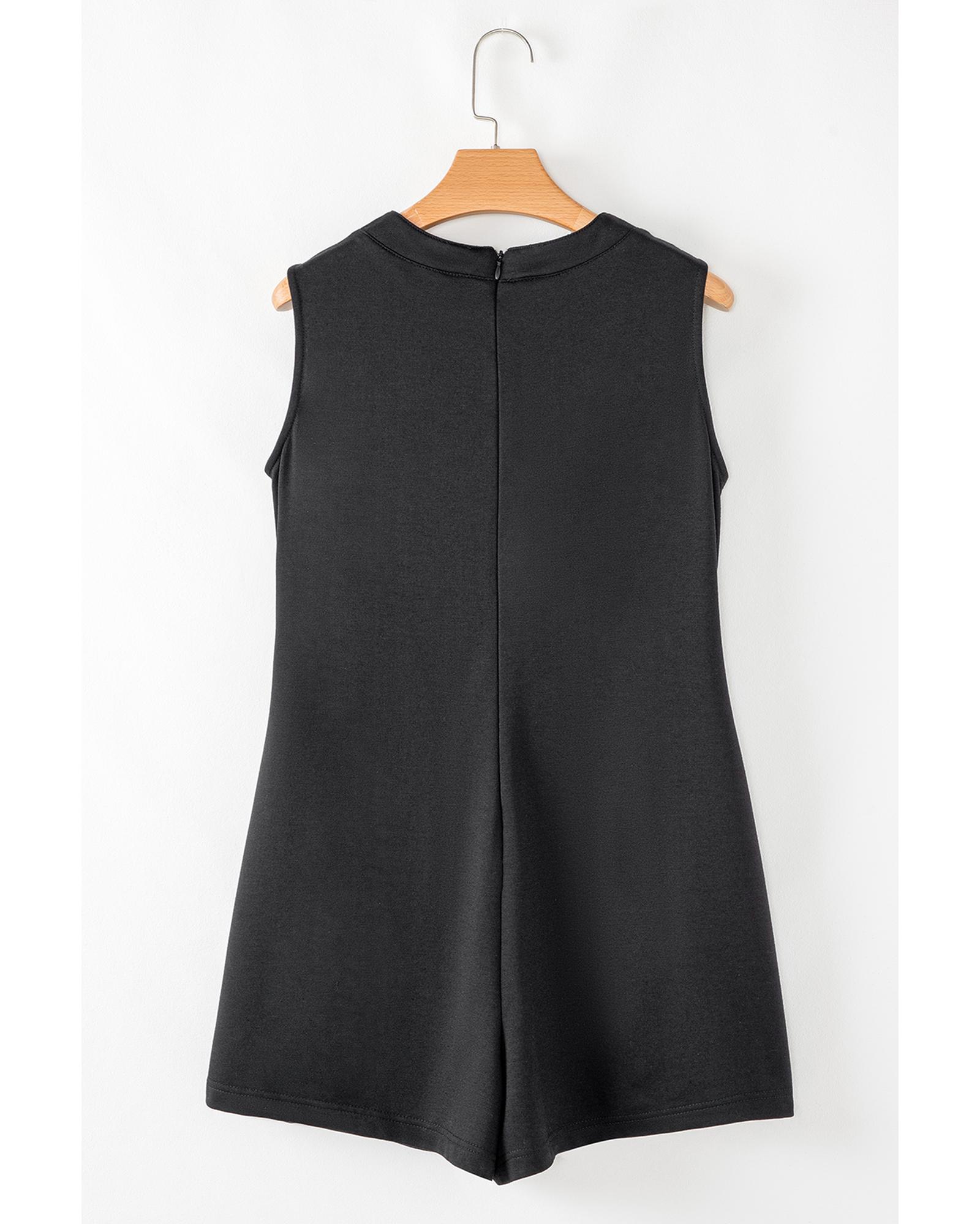 Black white Tie V Neck Pintuck Sleeveless Loose Romper – 2XL