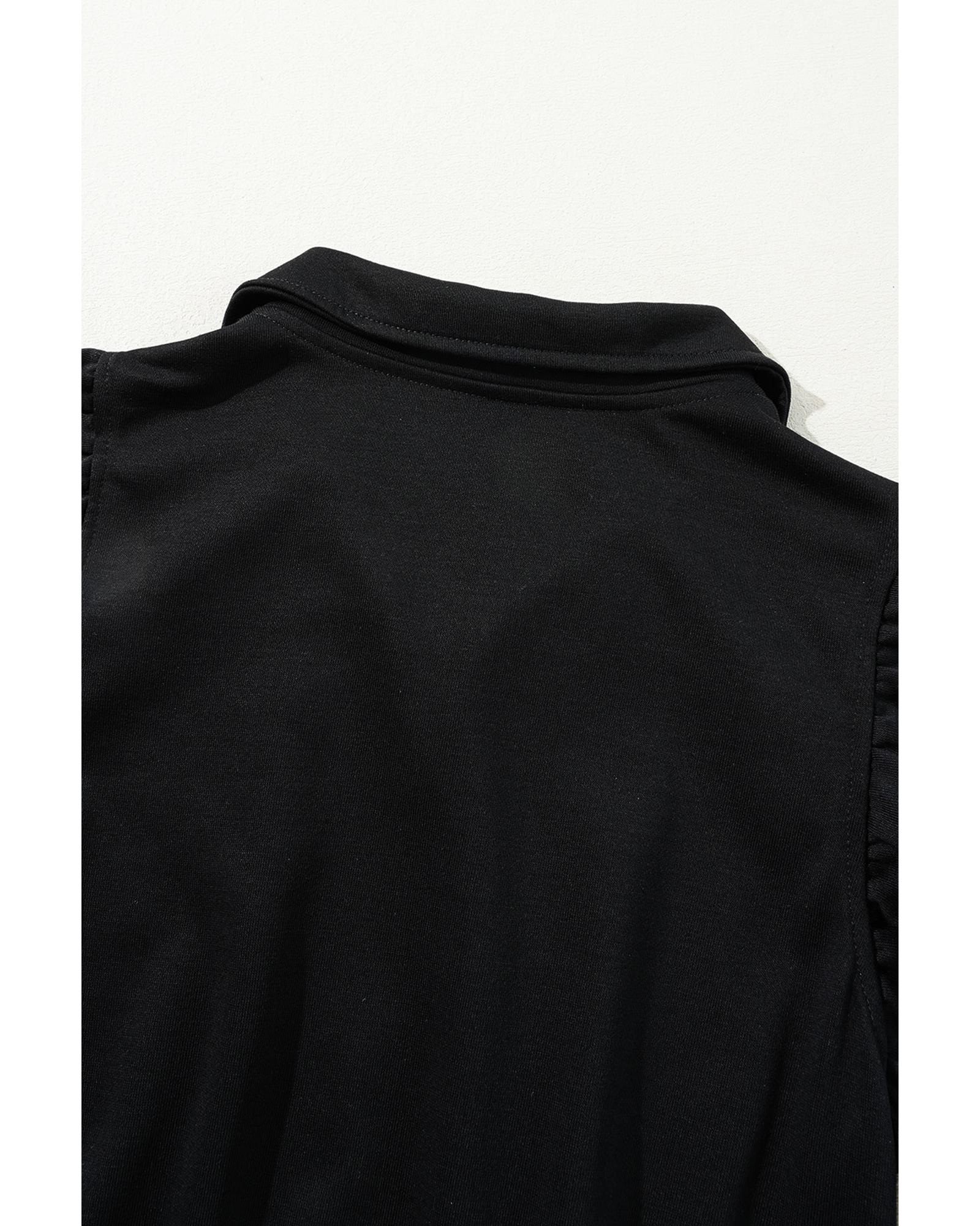 Black Zipper Flutter Sleeve Drawstring High Waist Jumpsuit – M