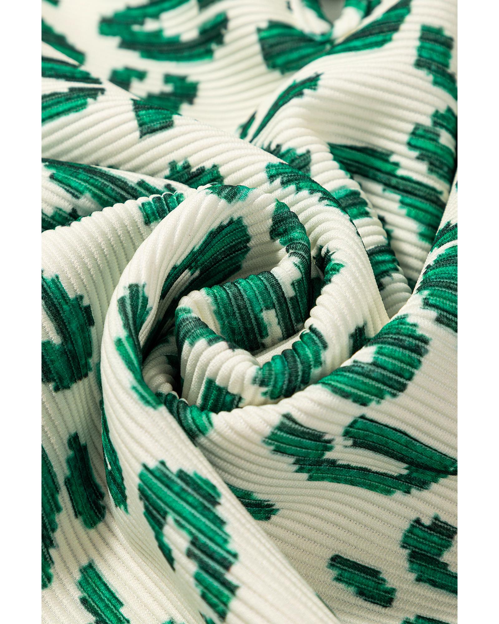 - Blackish Green Leopard Print Mock Neck Puff Sleeve Top