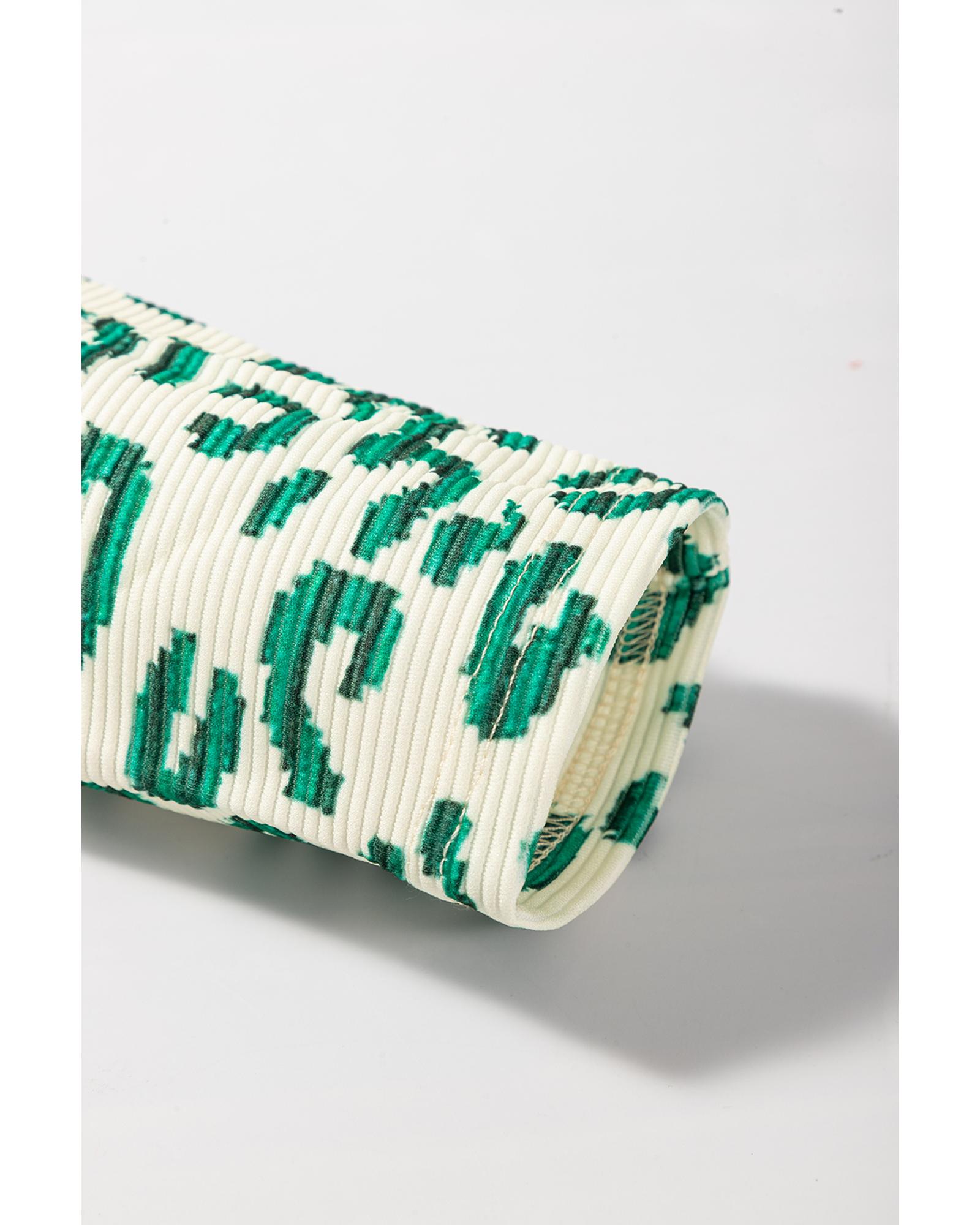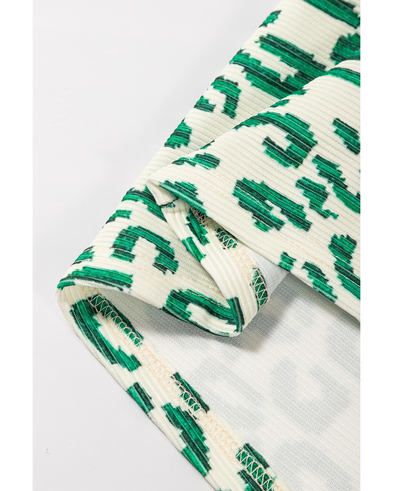 • Blackish Green Leopard Print Mock Neck Puff Sleeve Top