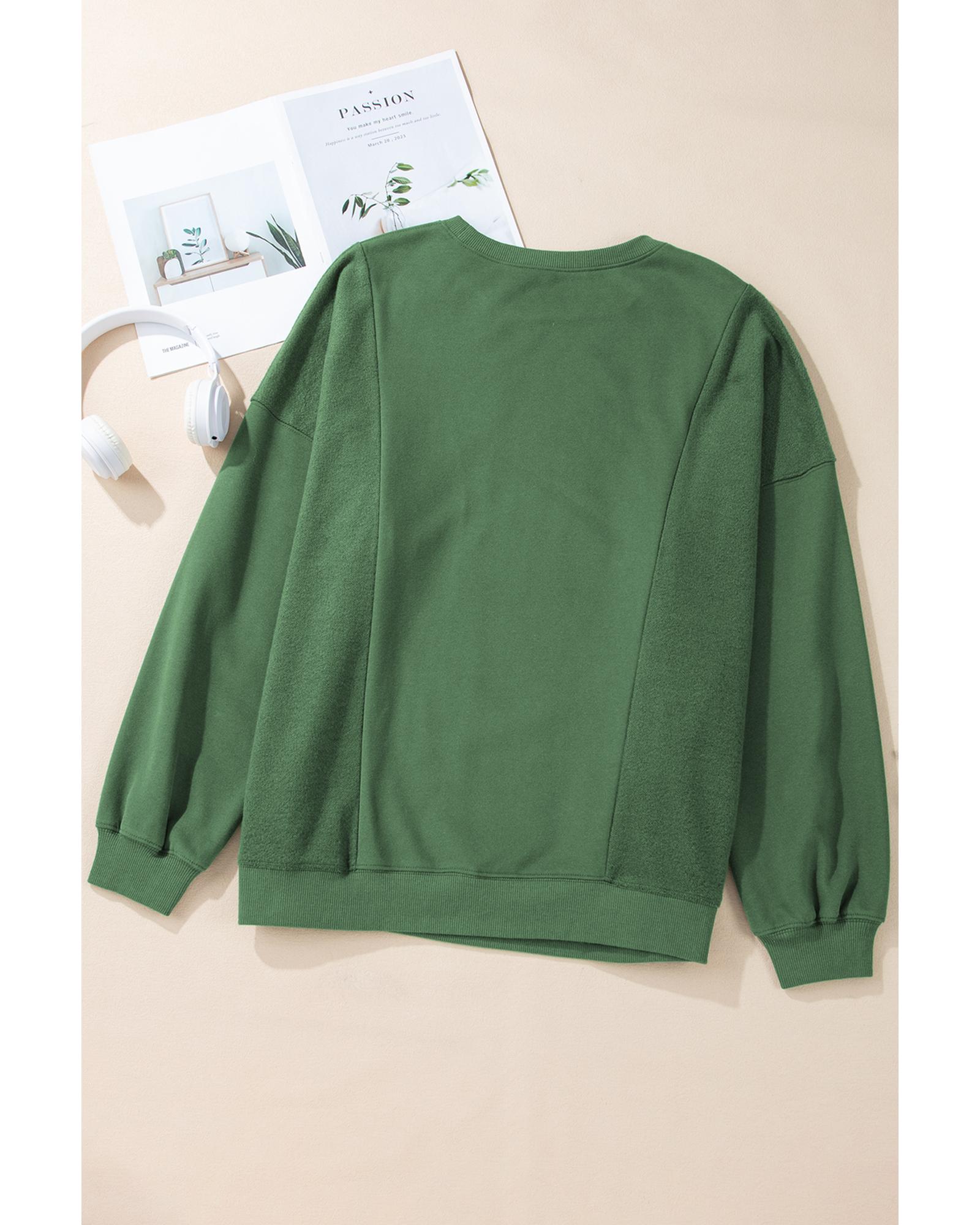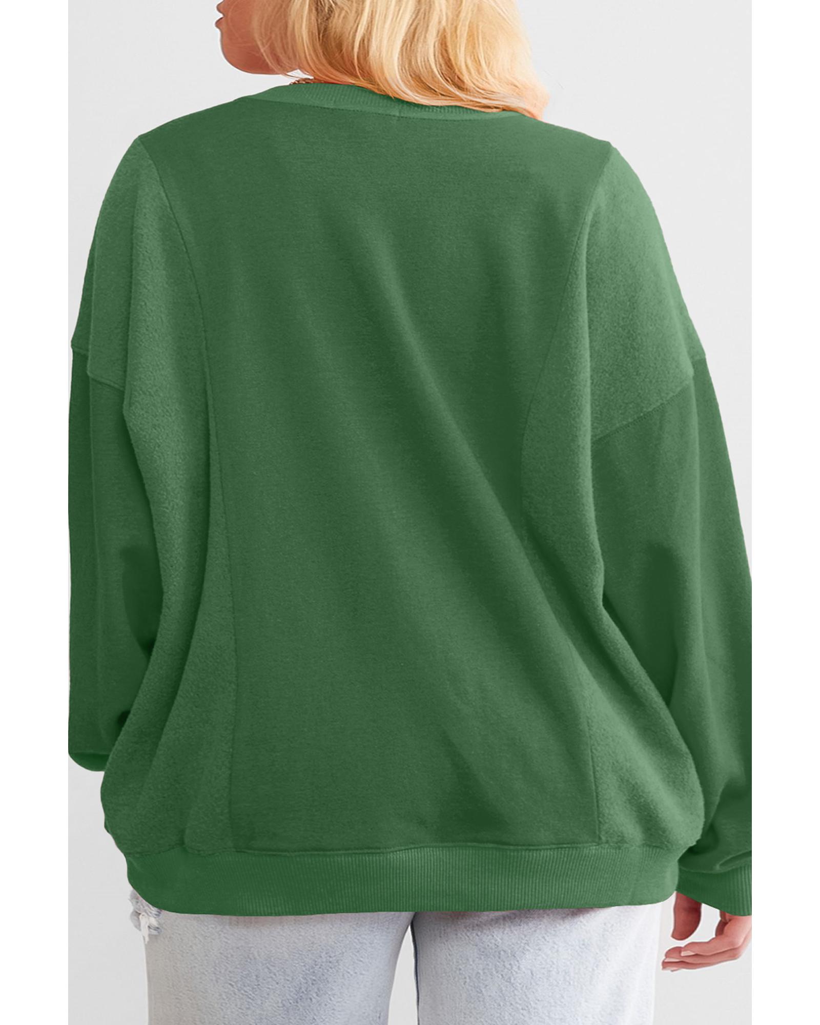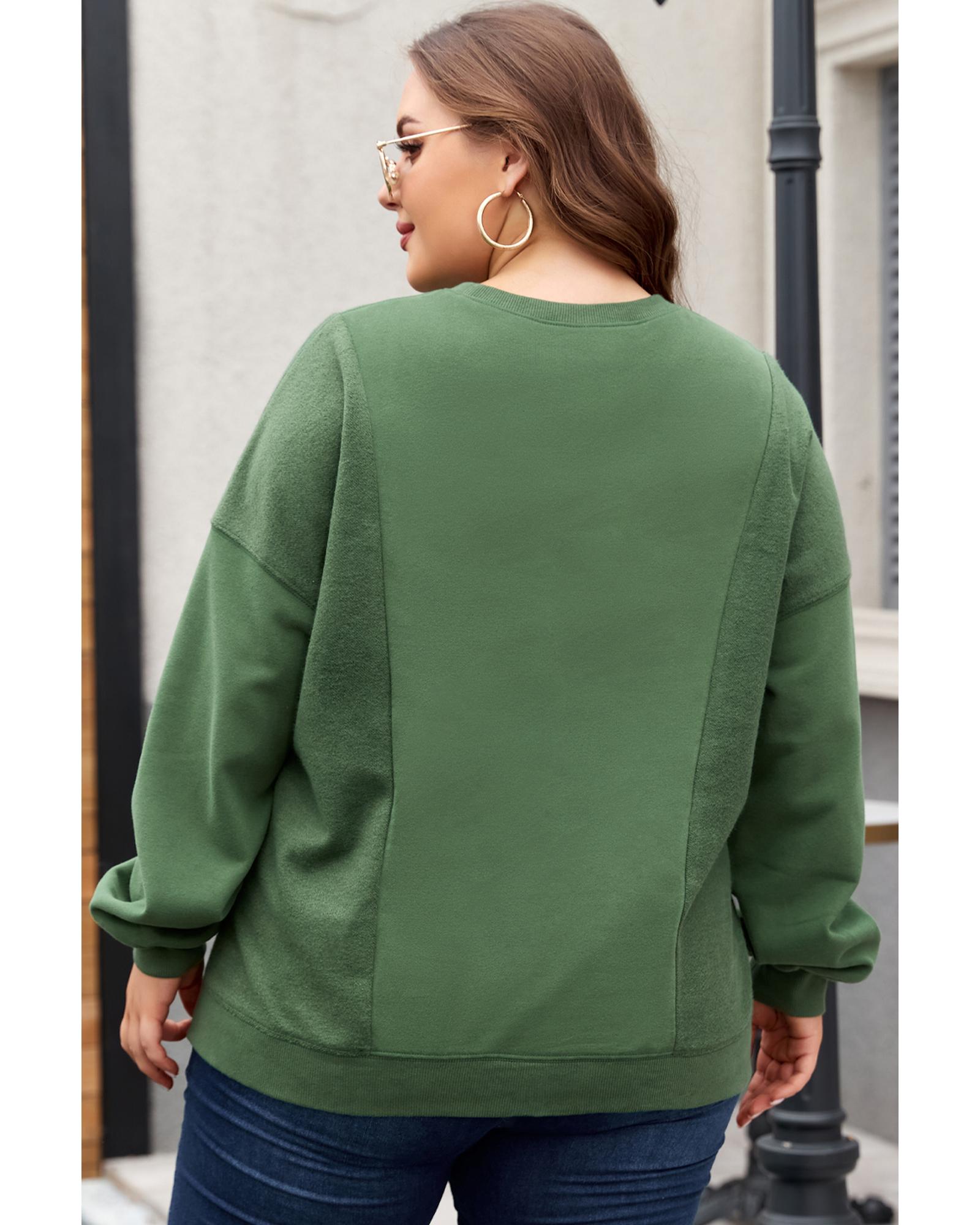 Blackish Green Loose Patchwork Crewneck Plus Size Sweatshirt – 4X