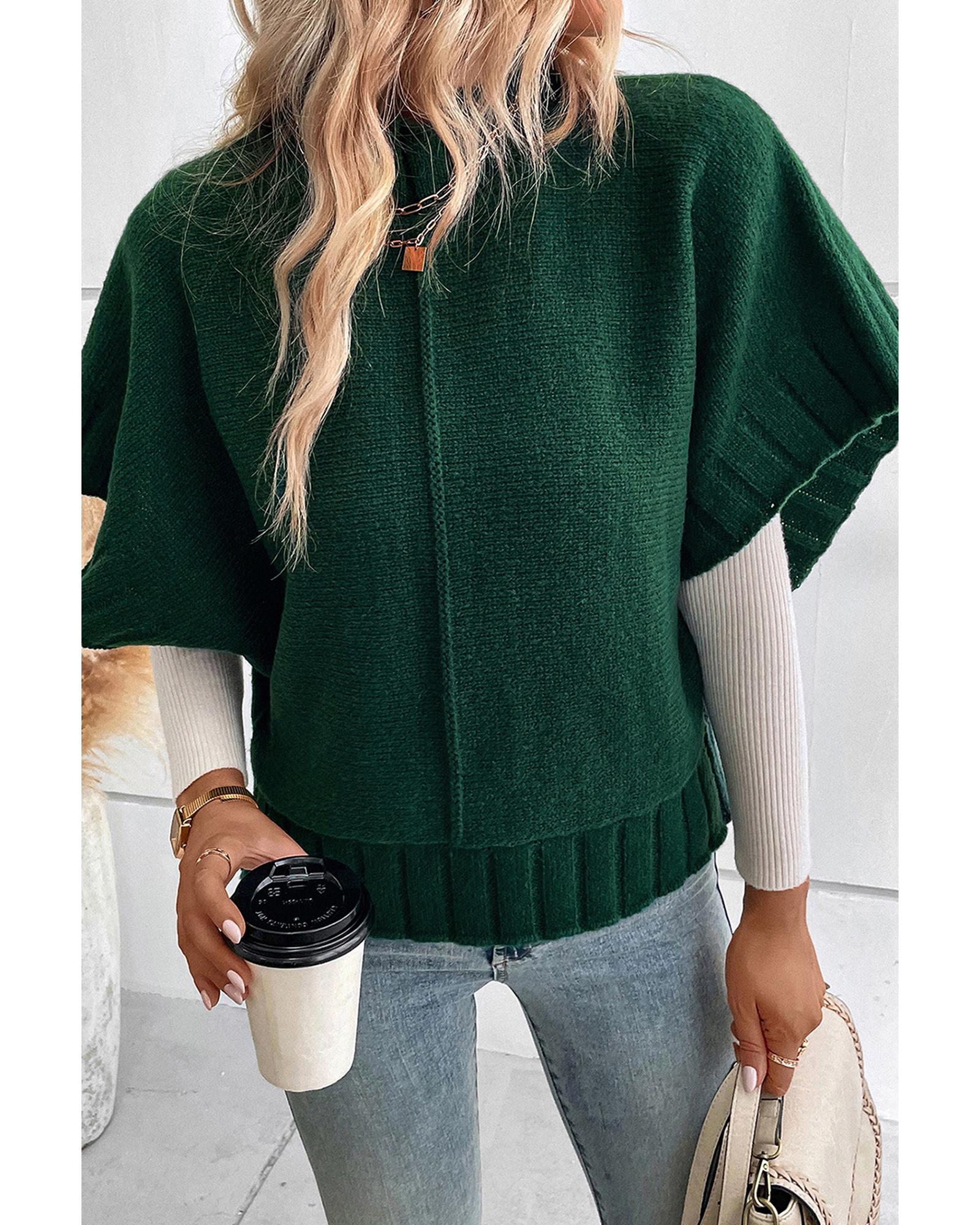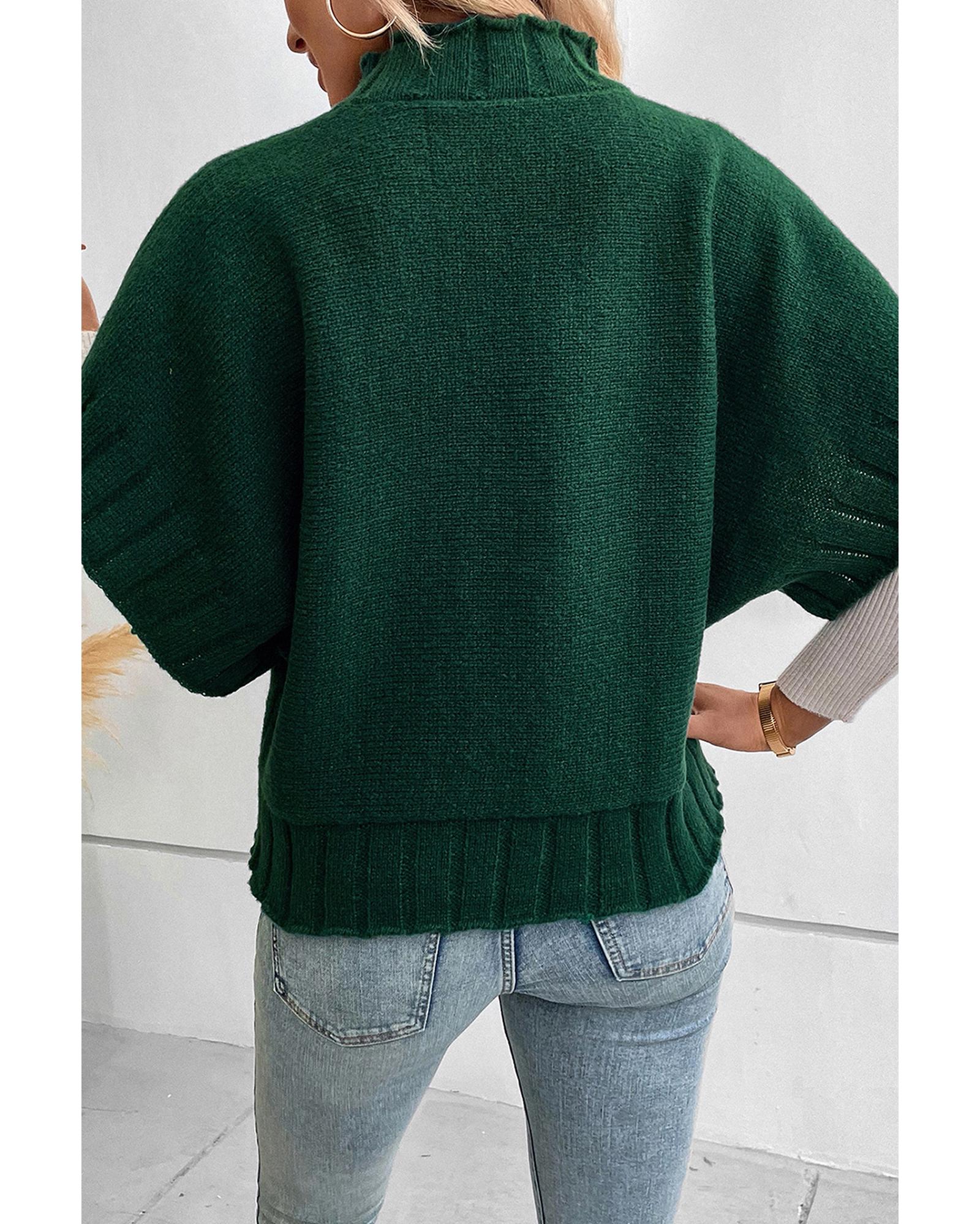 Blackish Green Mock Neck Batwing Short Sleeve Knit Sweater – XL