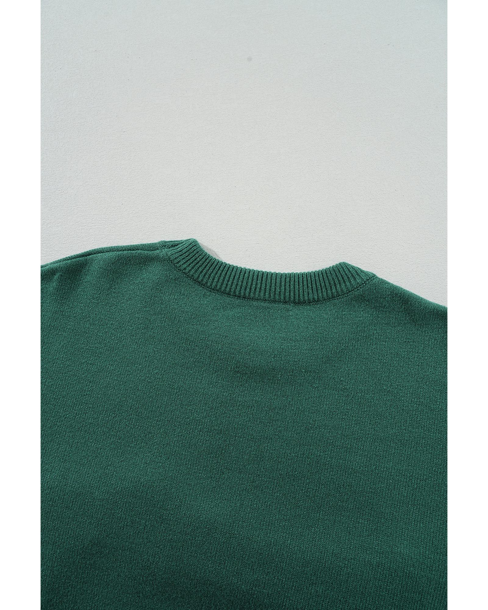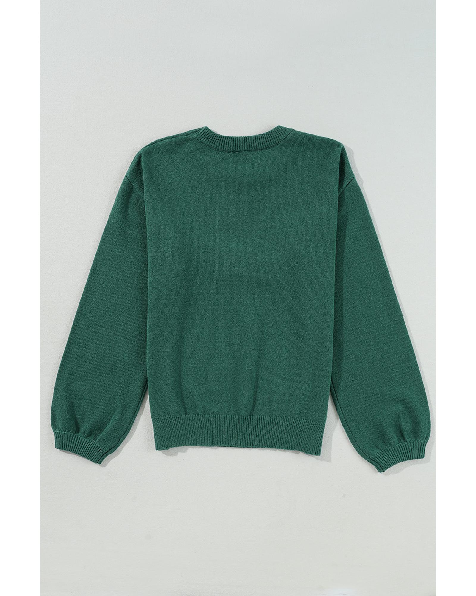 Blackish Green Pearl Beaded Merry Casual Sweater – S